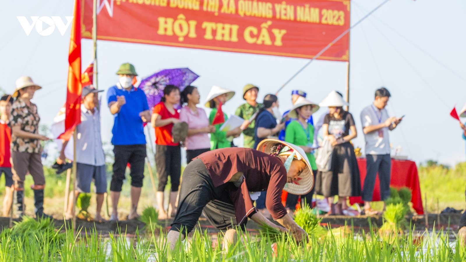 VOV.VN - Lễ hội xuống đồng 2023 diễn ra ở khu vực đình Cốc (phường Phong Cốc, thị xã Quảng Yên, tỉnh Quảng Ninh) với nhiều hoạt động văn hoá, thể thao đặc sắc như hội thi "Cấy xuống đồng", "Bơi chải truyền thống" trên sông thu hút đông đảo người dân địa phương và du khách về tham dự.