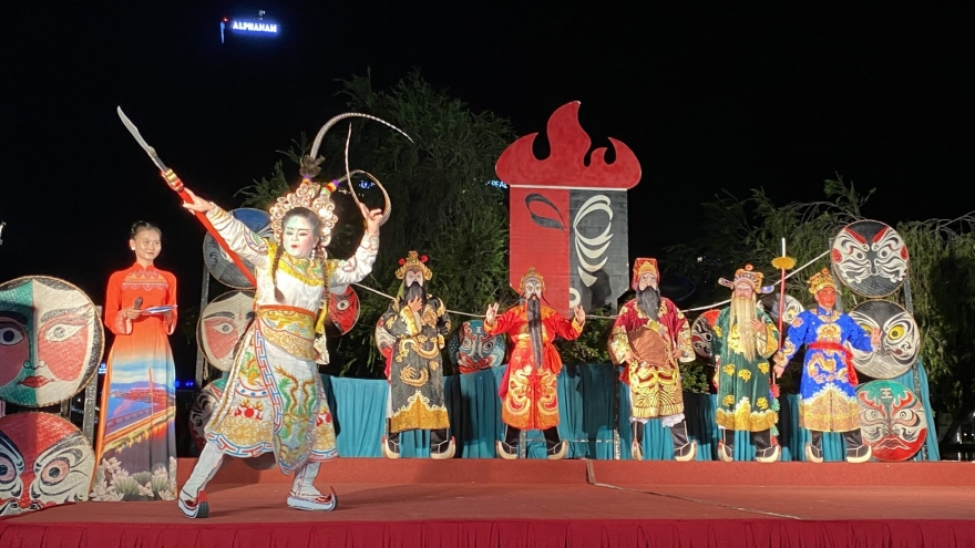 VOV.VN - Sau bài viết "Chút chạnh lòng về bản quyền tác giả", tôi đã rất vui khi thấy ở các buổi diễn sau, tên các nhạc sĩ đã được xướng lên bên tác phẩm của họ cùng lời giải thích của NSƯT Trần Ngọc Tuấn - Giám đốc Nhà hát Tuồng Nguyễn Hiển Dĩnh (Đà Nẵng). Và từ niềm vui ấy, thêm ấn tượng với cách quảng bá nghệ thuật Tuồng của Nhà hát, tôi đã hỏi anh về dự án "Tuồng xuống phố".
