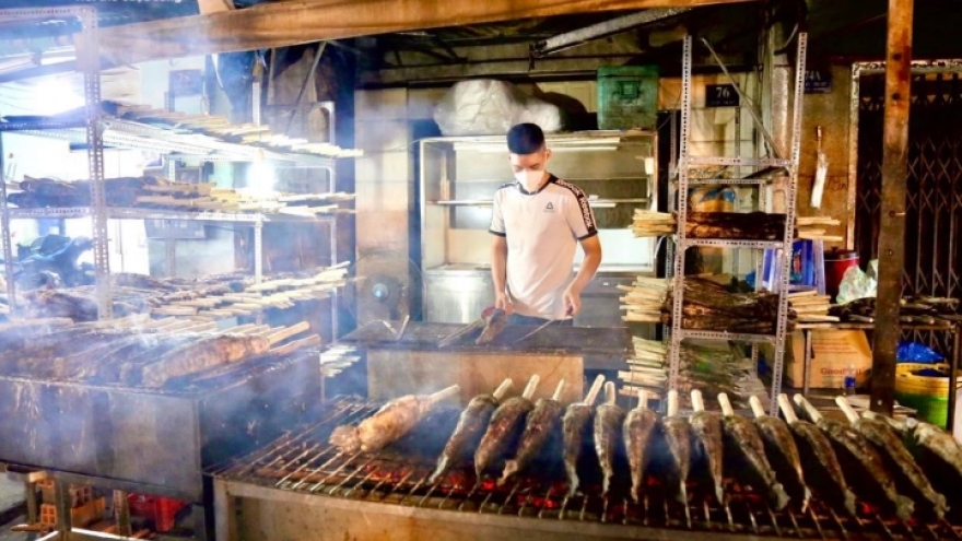VOV.VN - Nhập gần 5.000 con cá lóc về nướng để bán ngày vía Thần Tài, chủ quán phải thuê hàng chục người cùng làm việc xuyên đêm để kịp cung ứng cho khách hàng.