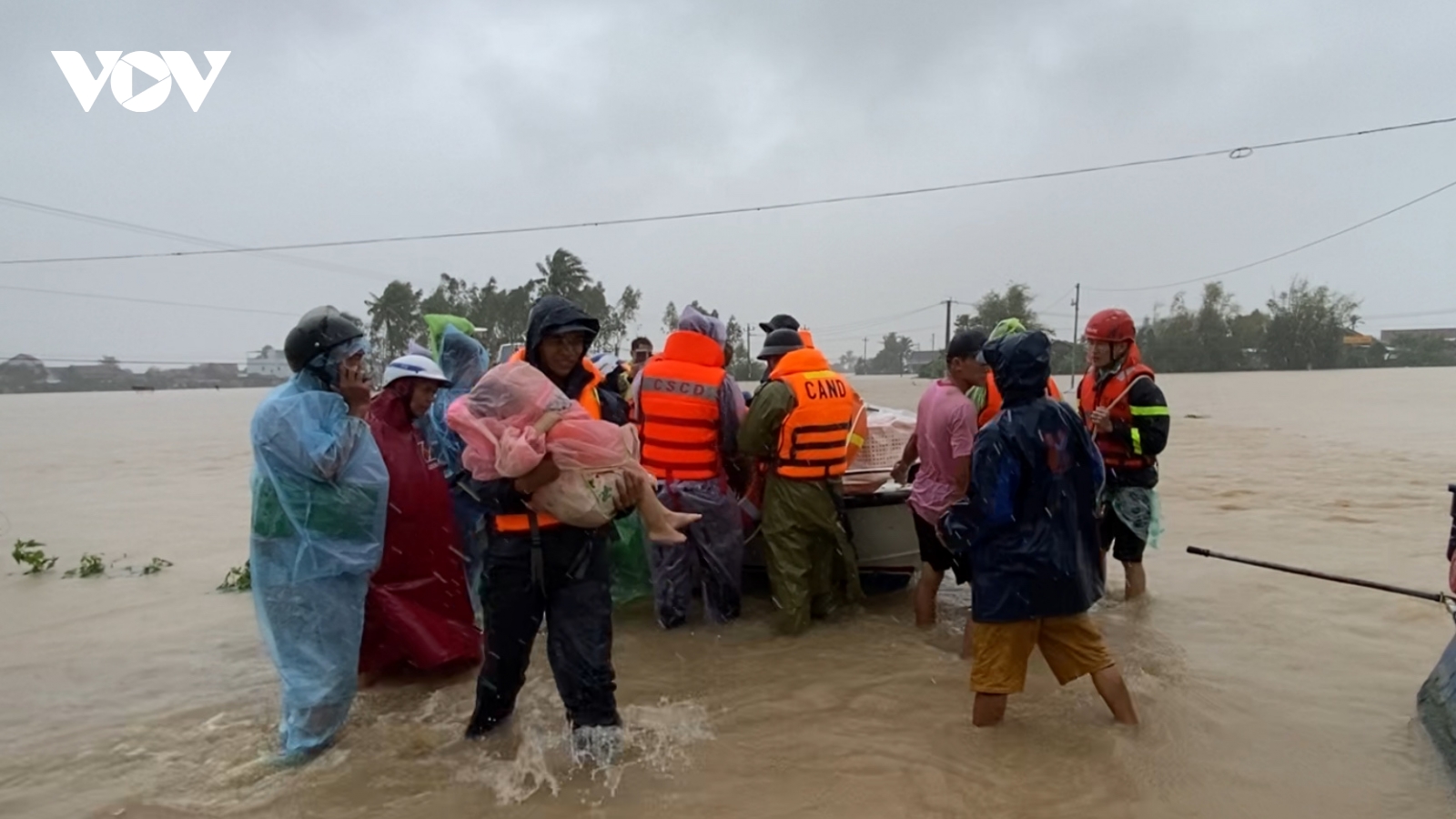 VOV.VN - Em bé 20 ngày tuổi ở vùng lũ xã Hoà Thịnh, tỉnh Đắk Lắk (huyện Tây Hoà, tỉnh Phú Yên cũ) đã được đưa ra khỏi vùng lũ nguy hiểm sau hơn 2 ngày ở trên nóc nhà cùng mẹ.