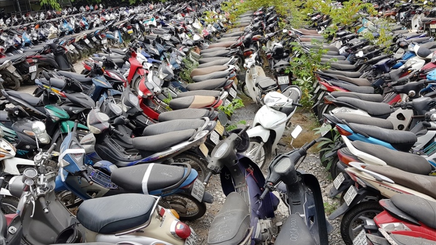 Tại Hà Nội, hiện có đến hàng nghìn chiếc xe máy đang bị giữ tại các bãi xe sau khi bị xử lý vi phạm an toàn giao thông, tuy nhiên đến nay, đa phần số xe này đang bị hư hỏng, cũ nát do chủ phương tiện không đến lấy hoặc xác định vứt bỏ.