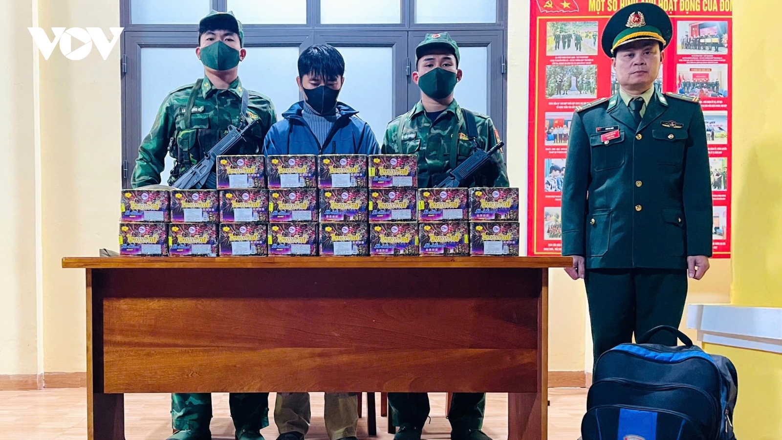 VOV.VN - Bộ đội Biên phòng tỉnh Nghệ An đã bắt giữ đối tượng Nguyễn Hữu Ngọc, trú tại xã Văn Hiến, tỉnh Nghệ An về hành vi vận chuyển trái phép 26kg pháo hoa nổ.