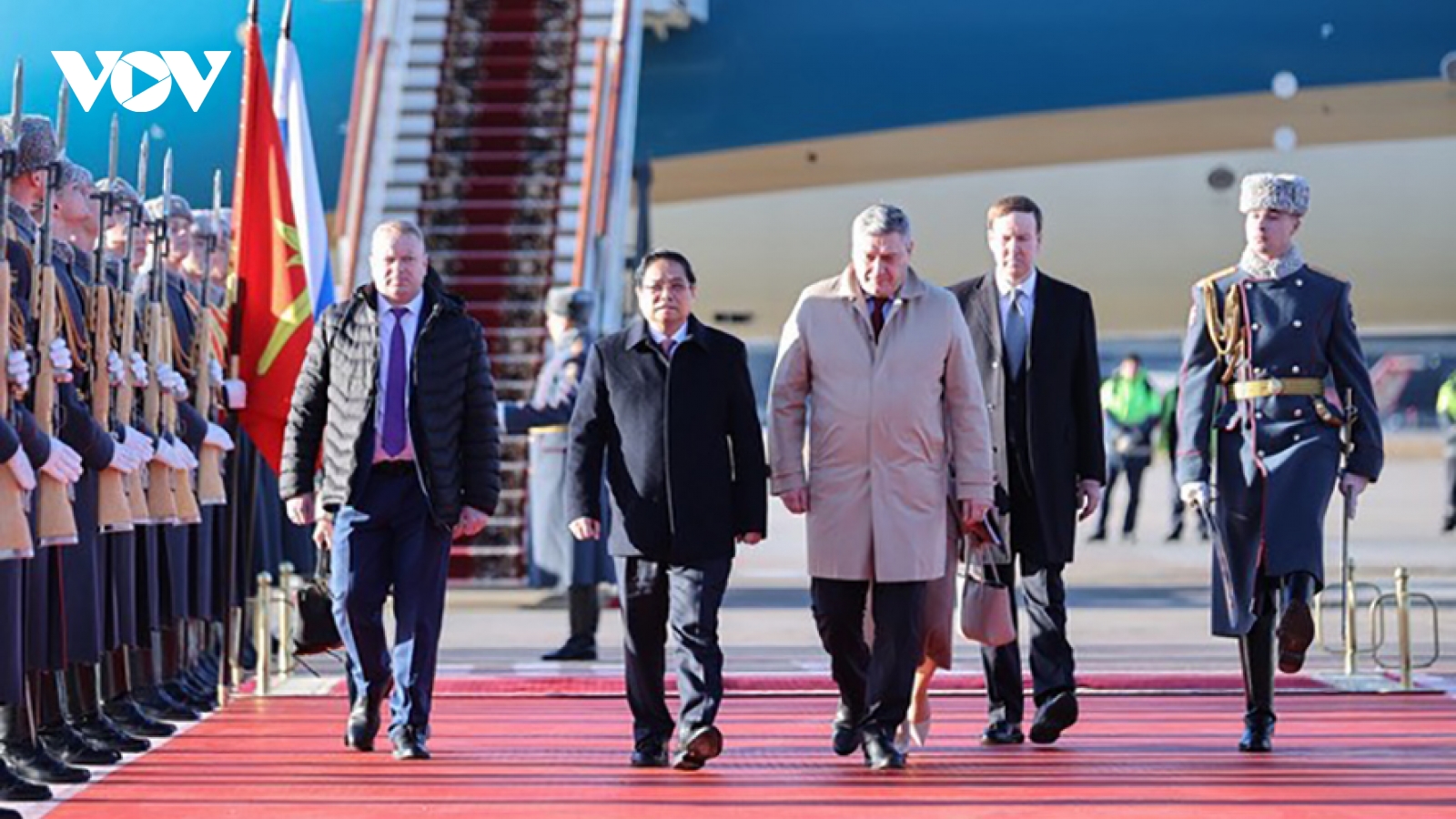 VOV.VN - Nhận lời mời của Thủ tướng Chính phủ Liên bang Nga Mikhail Mishustin, vào 17h ngày 22/3 (theo giờ địa phương), Thủ tướng Chính phủ Phạm Minh Chính cùng Đoàn đại biểu cấp cao Việt Nam đã đến Sân bay quốc tế Vnukovo-2, thủ đô Moscow, bắt đầu chuyến thăm chính thức Liên bang Nga từ ngày 22–25/3.