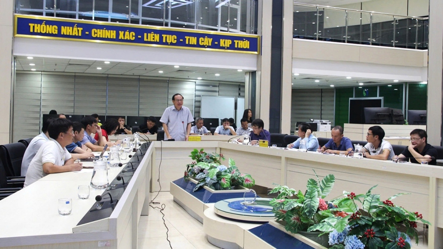 VOV.VN - Tối 3/9, tại Hà Nội, Tổng cục Khí tượng Thuỷ văn (KTTV) tổ chức họp về công tác dự báo cơn bão số 3 – cơn bão YAGI. Thứ trưởng Bộ Tài nguyên và Môi trường (TN&MT) Lê Công Thành chủ trì cuộc họp.