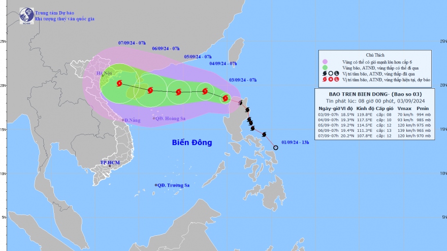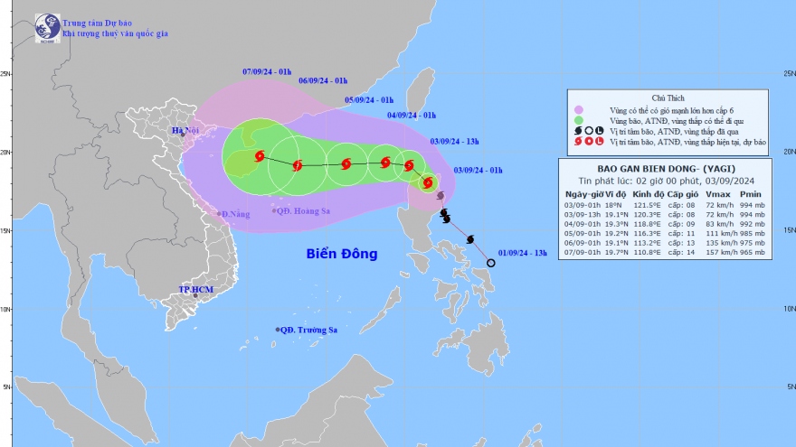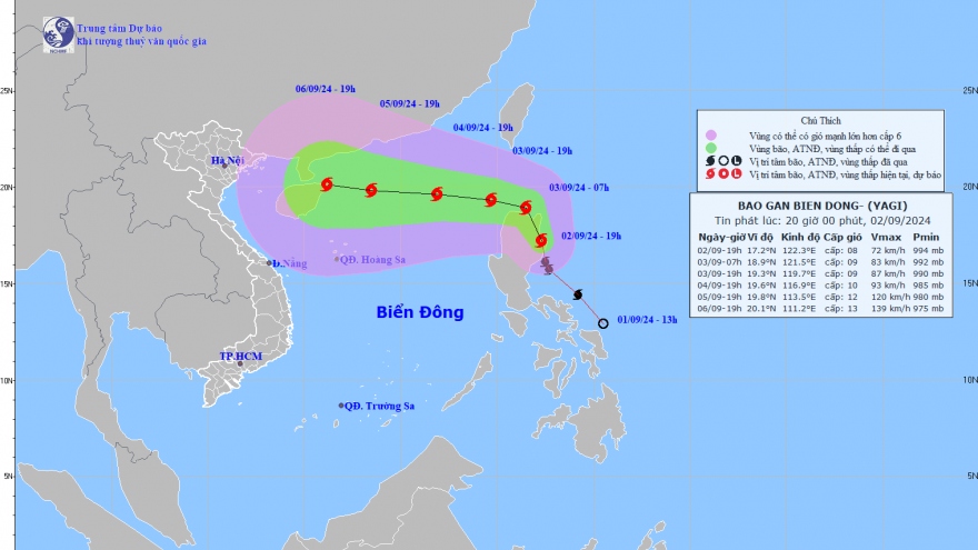 VOV.VN - Bão YAGI liên tục tăng cấp khi vào Biển Đông, phạm vi gió mạnh rất rộng theo hướng di chuyển của bão. Có 2 kịch bản hướng đi dự kiến của bão, thứ nhất bão có khả năng di chuyển lên phía Bắc, đi vào khu vực phía Bắc của Vịnh Bắc Bộ; kịch bản 2, bão đổi hướng đi xuống khu vực phía Nam của Vịnh Bắc Bộ