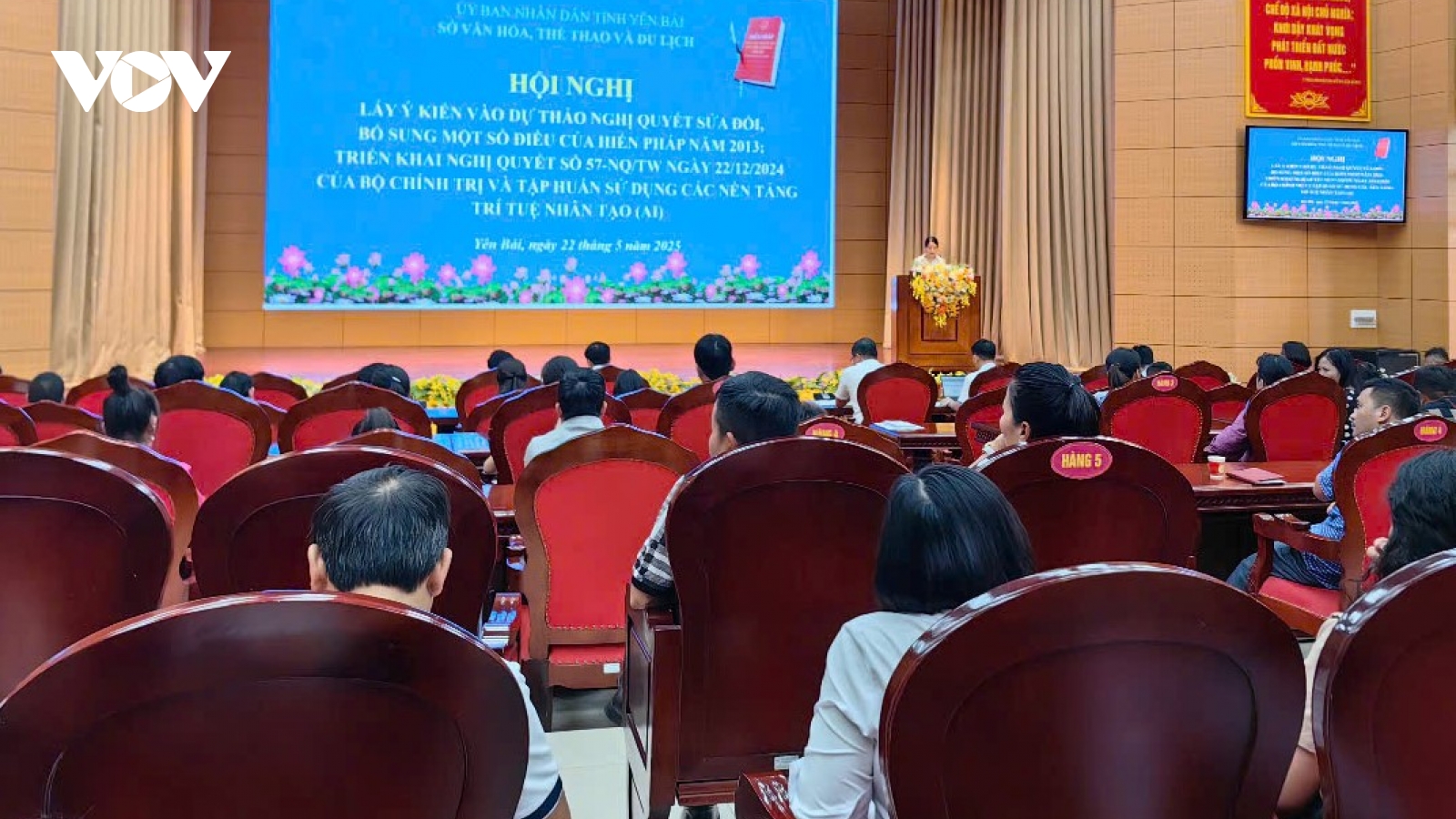 VOV.VN - Tỉnh Yên Bái tổ chức sâu rộng việc lấy ý kiến vào dự thảo Nghị quyết sửa đổi, bổ sung một số điều của Hiến pháp năm 2013 và đã nhận được nhiều ý kiến tâm huyết, trong đó có các ý kiến từ cán bộ, công chức ngành Văn hoá, Thể thao và Du lịch.