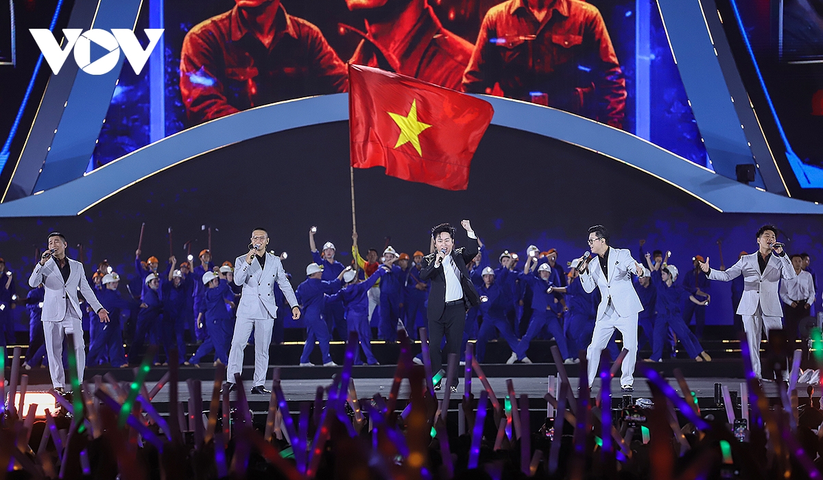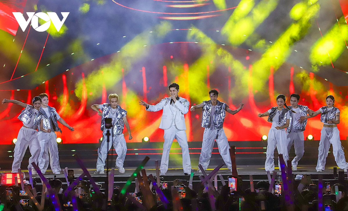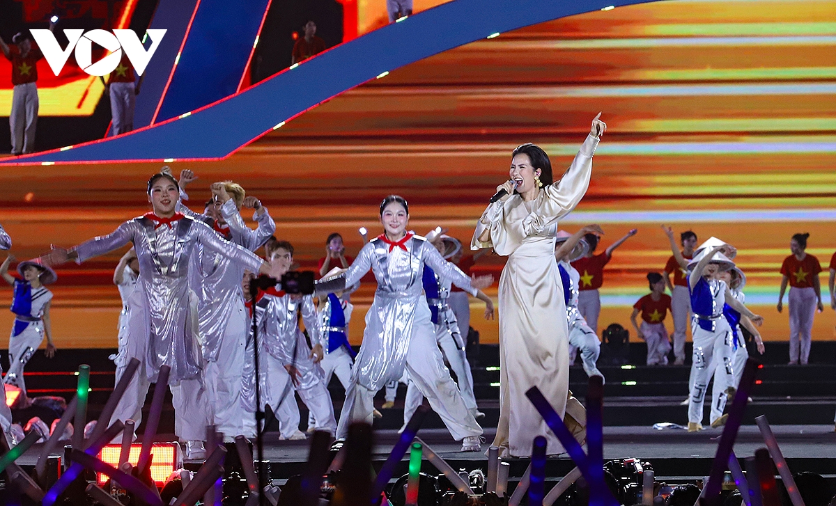 Sức nóng từ 30.000 khán giả khiến các ca sỹ cũng “cháy hết mình” trong phần trình diễn và giao lưu. Ca sỹ Võ Hạ Trâm khoe chất giọng nội lực với những đoạn ngân cao vút trong “Vinh quang đang chờ ta” và “Nguyện là người Việt Nam”.