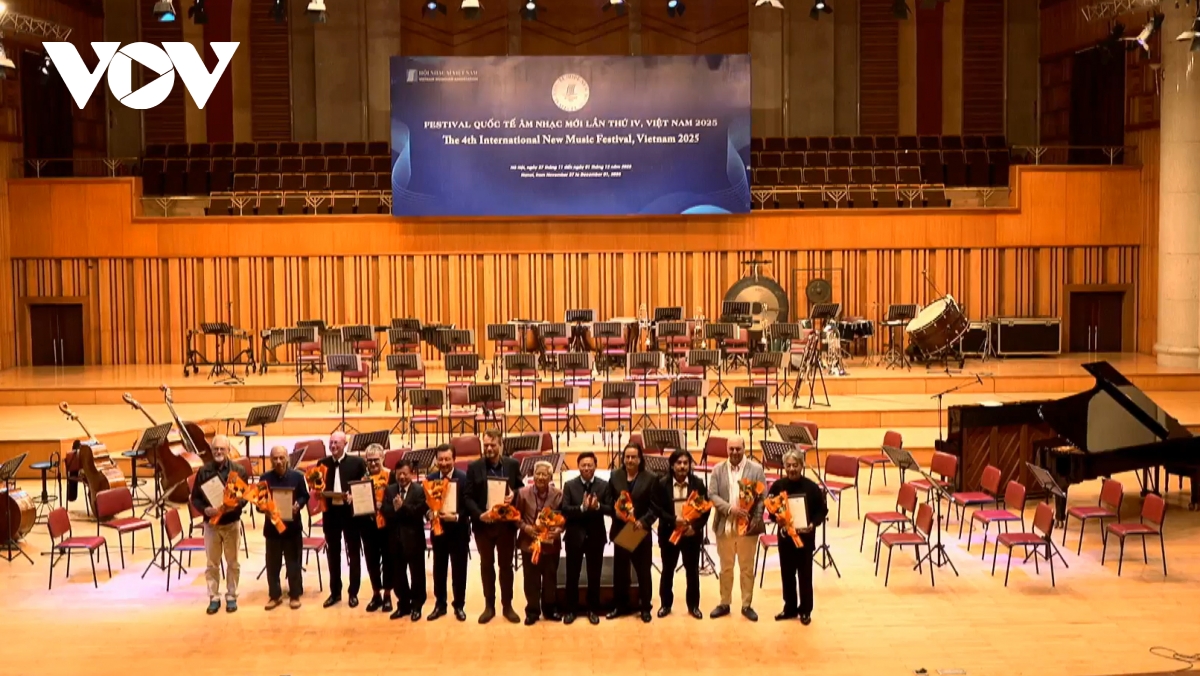 Tối 1/12 tại Phòng hòa nhạc Lớn, Học viện Âm nhạc Quốc gia Việt Nam diễn ra Lễ bế mạc Festival quốc tế Âm nhạc Mới lần thứ IV và chương trình nghệ thuật thứ sáu của sự kiện. Festival năm nay diễn ra từ ngày 27/11 đến 1/12, hướng đến tiêu chí giới thiệu những tác phẩm mới sáng tác trong những năm gần đây của các nhạc sĩ tiêu biểu cho các trường phái âm nhạc đương đại trên thế giới. Sự kiện quy tụ nhiều nghệ sĩ quốc tế và Việt Nam, mang đến cho khán giả những chương trình phong phú, phản ánh sức sống mạnh mẽ của âm nhạc đương đại.