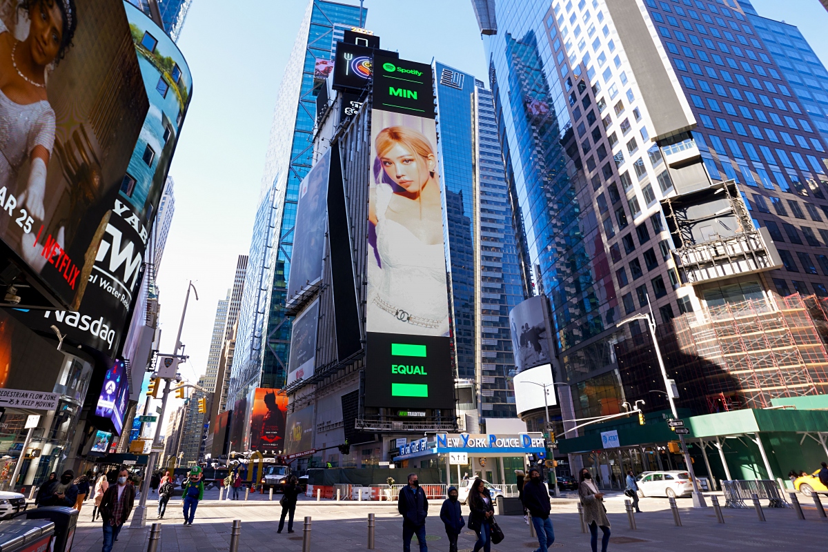 Min chia sẻ về việc hình ảnh của mình xuất hiện tại quảng trường Thời Đại: “Min rất vui mừng khi trở thành gương mặt tiếp theo được featured trên chiến dịch EQUAL của Spotify trong Tháng 3 này. Đây quả là 1 món quà ý nghĩa vào đúng dịp tháng 3 năm nay!”./.