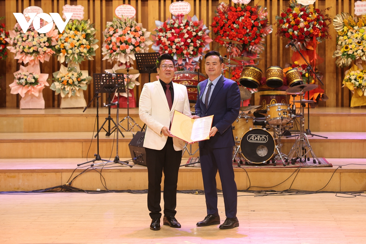 VOV.VN - Chiều 16/6, tại Học viện Âm nhạc Quốc gia Việt Nam đã diễn ra Lễ công bố và trao Quyết định công nhận chức vụ Giám đốc Học viện Âm nhạc Quốc gia Việt Nam đối với TS.NSND Đỗ Quốc Hưng.