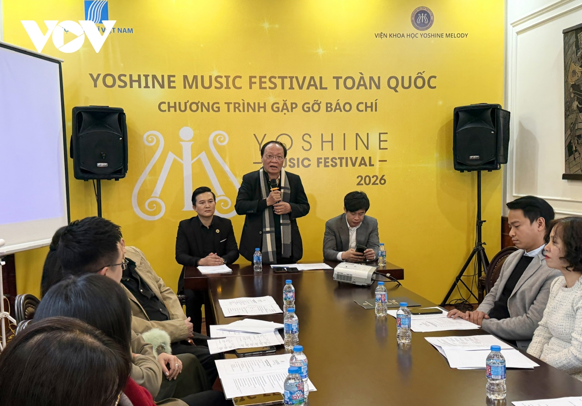 VOV.VN - Chiều 10/1, Hội Nhạc sĩ Việt Nam phối hợp cùng Viện Khoa học Giáo dục Yoshine Melody tổ chức họp báo công bố Yoshine Music Festival Toàn quốc 2026 – sự kiện âm nhạc và giáo dục nghệ thuật dự kiến triển khai trong năm 2026.