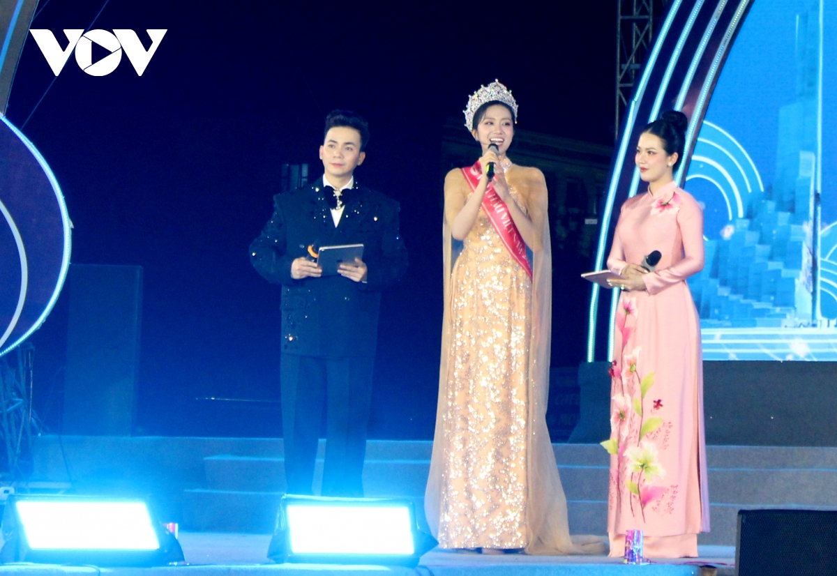 Tân hoa hậu Việt Nam 2024 Hà Trúc Linh giao lưu với người dân nơi quê hương.
