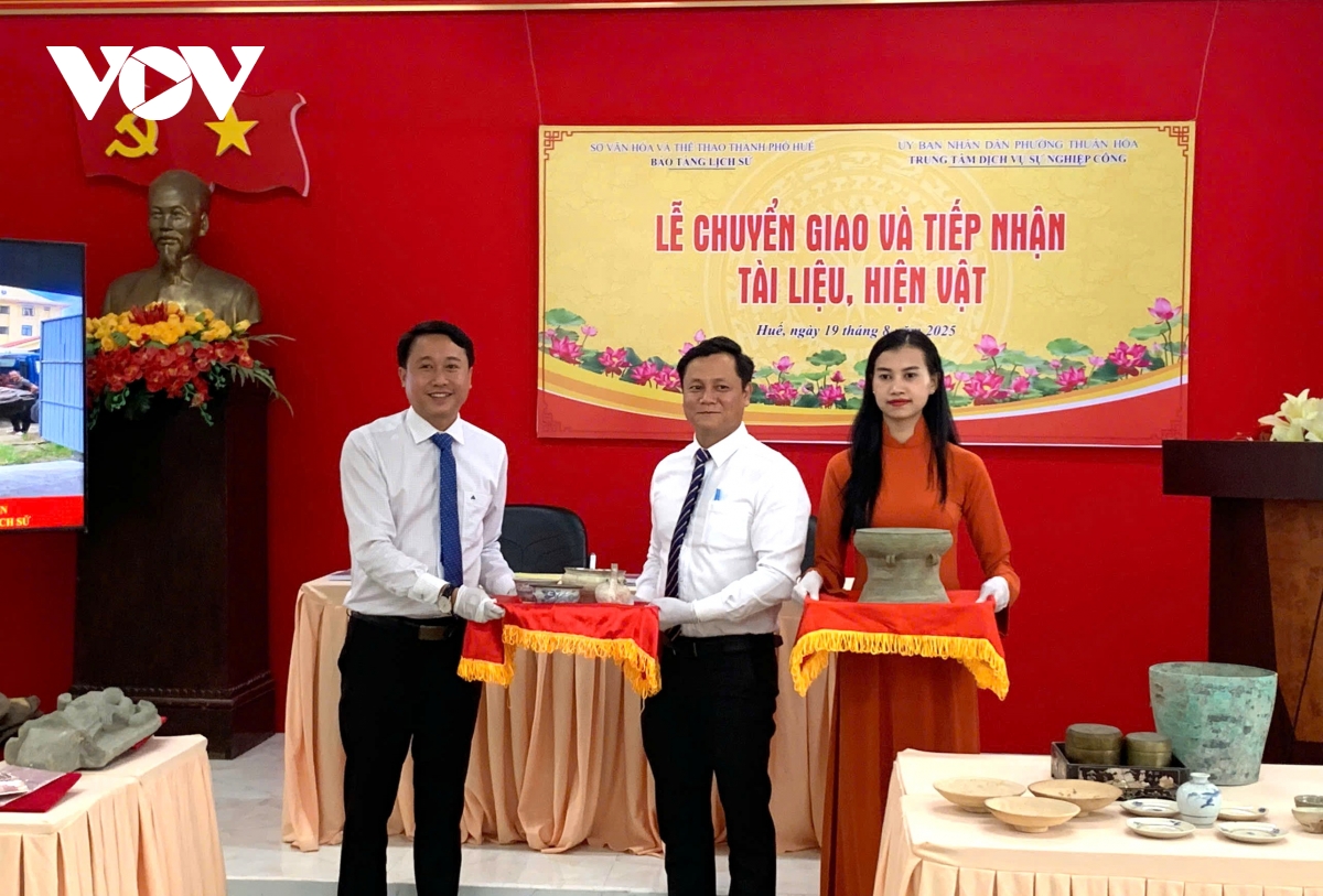 VOV.VN - Chiều 19/8, Bảo tàng Lịch sử thành phố Huế tổ chức lễ tiếp nhận 1.448 tư liệu, hiện vật từ Trung tâm Văn hóa, Thông tin và Thể thao quận Thuận Hóa (cũ).