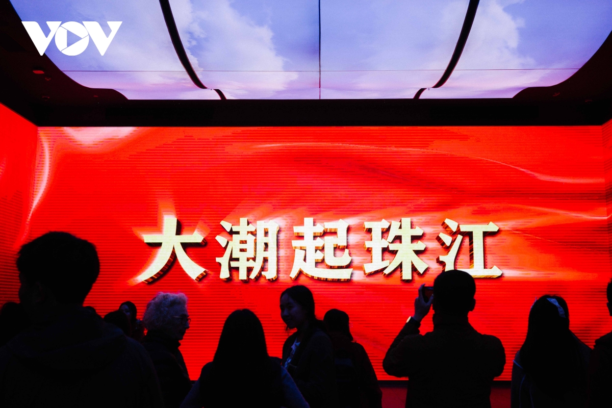Triển lãm thường trực “Thủy triều dâng từ Châu Giang” trải rộng trên hơn 6.300m², tái hiện 40 năm cải cách và mở cửa của Quảng Đông bằng cách kể chuyện trực quan, giàu nhịp điệu thị giác.