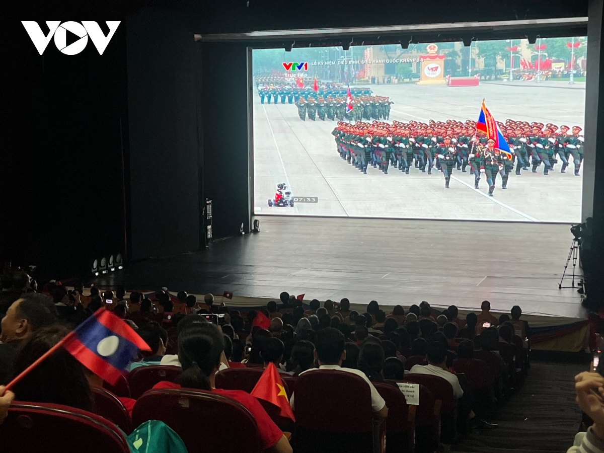 Đại sứ quán Việt Nam tại Lào tổ chức xem truyền hình trực tiếp lễ kỷ niệm Quốc khánh Việt Nam cho bà con cộng đồng và các bạn Lào.
