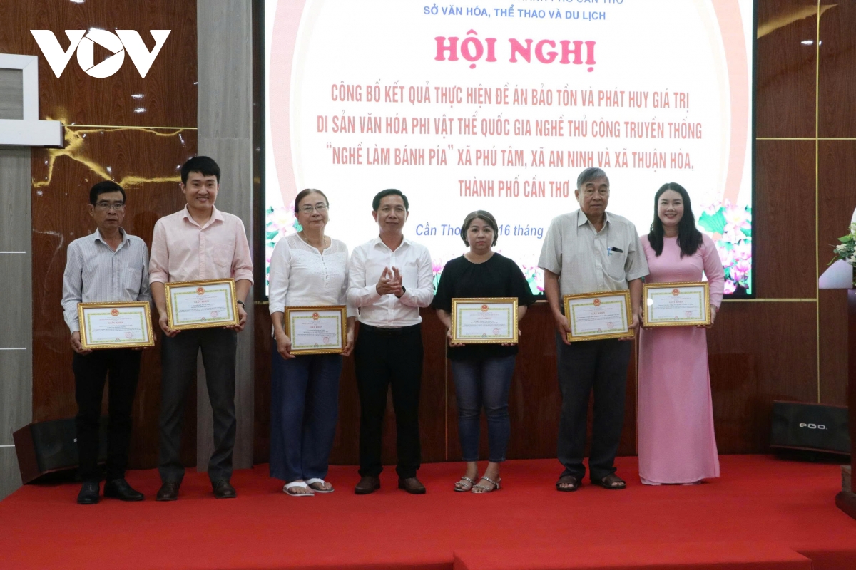 Dịp này, Ban tổ chức đã tiến hành khen thưởng 6 tập thể và 6 cá nhân có thành tích trong việc bảo tồn và phát huy giá trị di sản văn hóa phi vật thể quốc gia nghề thủ công truyền thống “Nghề làm bánh Pía".