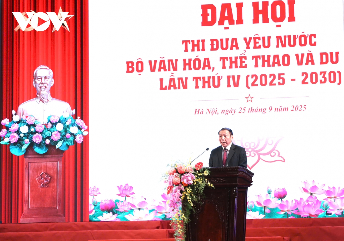 VOV.VN - Sáng 25/9, tại Nhà hát Lớn Hà Nội đã diễn ra Đại hội Thi đua yêu nước Bộ VHTTDL lần thứ IV (2025 - 2030). Ủy viên BCH Trung ương Đảng, Bộ trưởng Bộ VHTTDL Nguyễn Văn Hùng có bài phát biểu khai mạc đại hội.