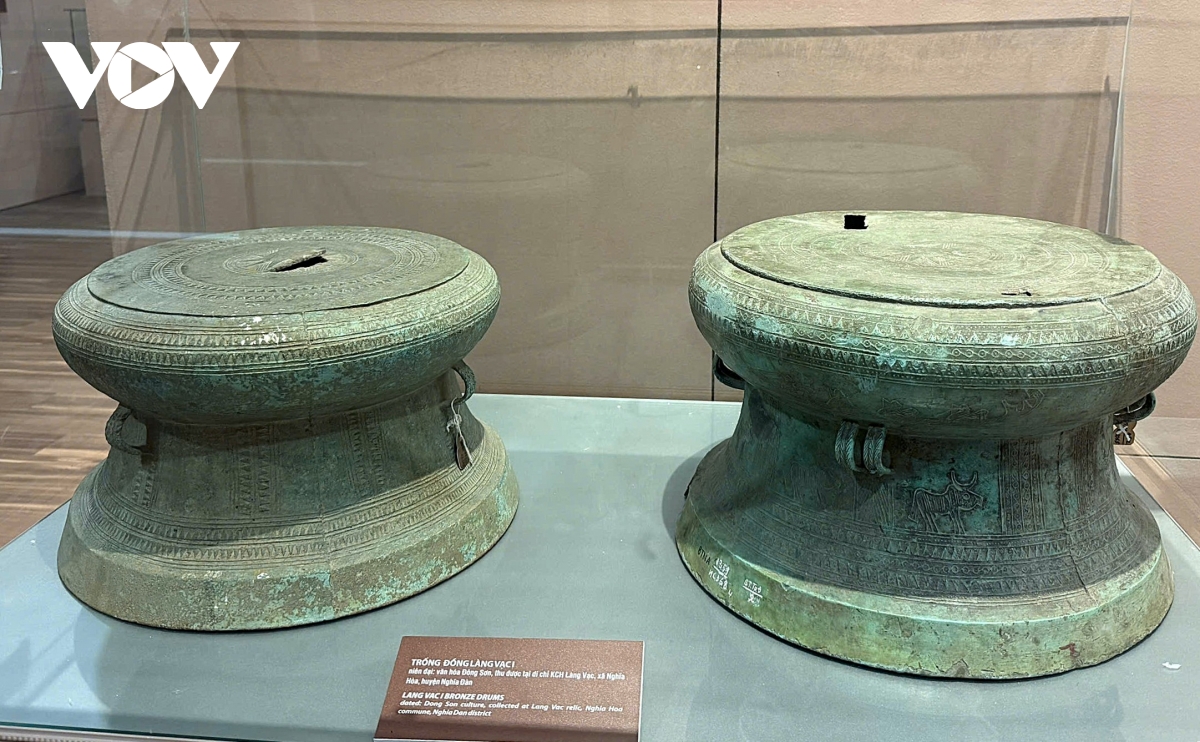 VOV.VN - Bộ sưu tập 5 chiếc trống đồng Làng Vạc Văn hoá Đông Sơn (niên đại: Thế kỷ III - I trước Công nguyên) đang lưu giữ tại Bảo tàng Nghệ An vừa được Chính phủ công nhận là bảo vật quốc gia. Những sản phẩm đều thể hiện đỉnh cao của kỹ thuật đúc đồng, nghệ thuật trang trí của văn hoá Đông Sơn và văn minh Việt cổ.
