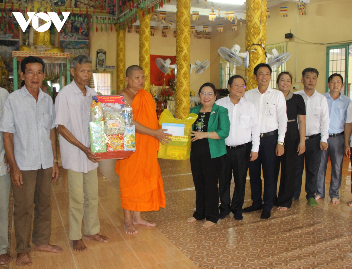 VOV.VN - Các cấp lãnh đạo tỉnh Trà Vinh, tỉnh An Giang đã tổ chức nhiều đoàn đến thăm, tặng quà nhân dịp lễ Sene Dolta (Cúng ông, bà) cổ truyền của đồng bào Khmer.