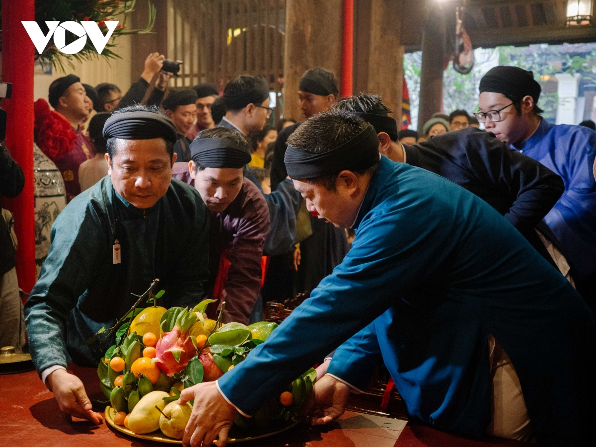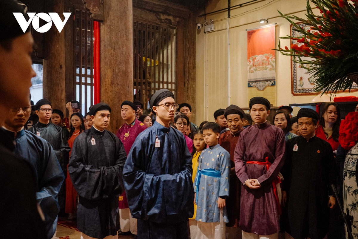 Khi nghi lễ bắt đầu, làn khói trầm lan nhẹ trong không gian, nhịp trống chiêng vang lên chậm rãi, trang phục tế lễ tạo nên một lớp màu cổ kính giữa phố thị. Không gian như được nén lại, tách khỏi nhịp sống vội vã thường nhật. Ở đó hiện lên một hình ảnh rất đặc trưng của Hà Nội, nơi hiện đại nhưng không đứt gãy, nơi đô thị vẫn giữ được cấu trúc tinh thần của làng xã truyền thống.