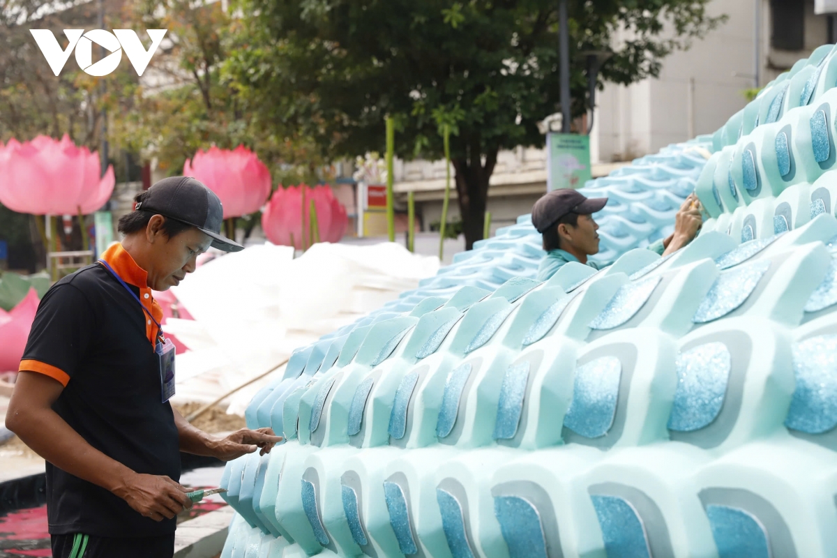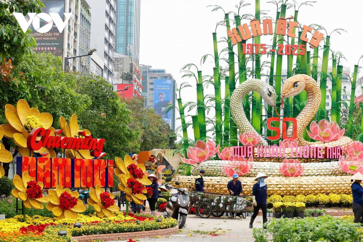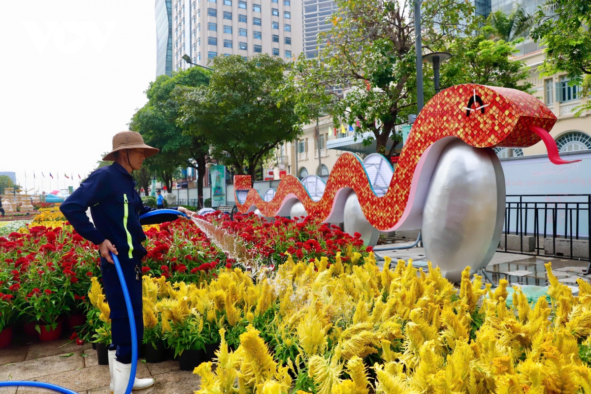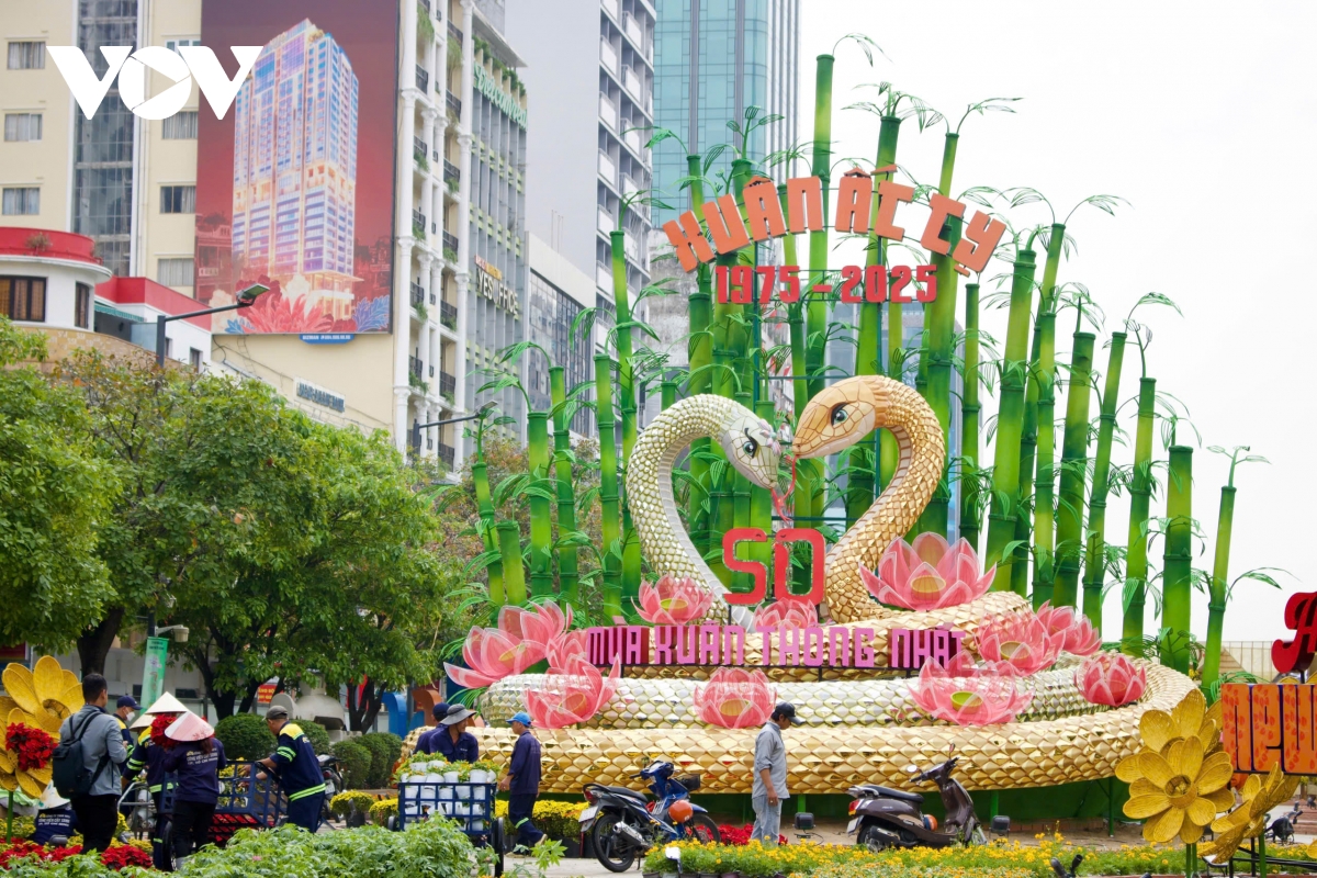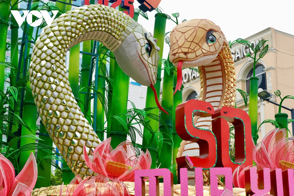 VOV.VN - Ngày 9/1, Đường hoa Nguyễn Huệ Tết Ất Tỵ 2025 của TP HCM sẽ được thi công nhằm phục vụ nhu cầu du xuân của người dân và du khách. Linh vật Rắn của Đường hoa Nguyễn Huệ năm nay được hứa hẹn là sẽ rất ấn tượng về ngoại hình, kích thước và cách chế tác so với linh vật Rắn của năm Quý Tỵ 2013.