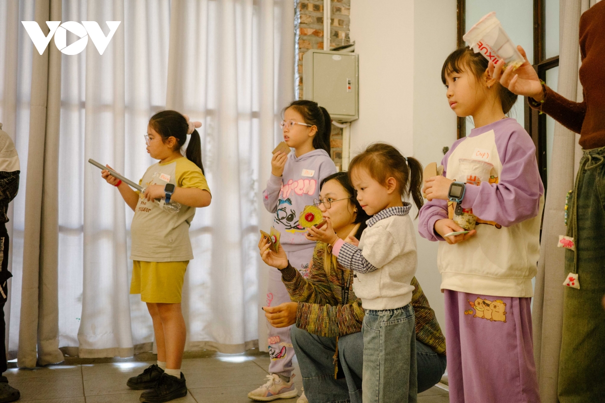 Không gian workshop rộn ràng tiếng cười, nơi trẻ được tự do thử nghiệm mà không bị khuôn khổ ngăn cản.