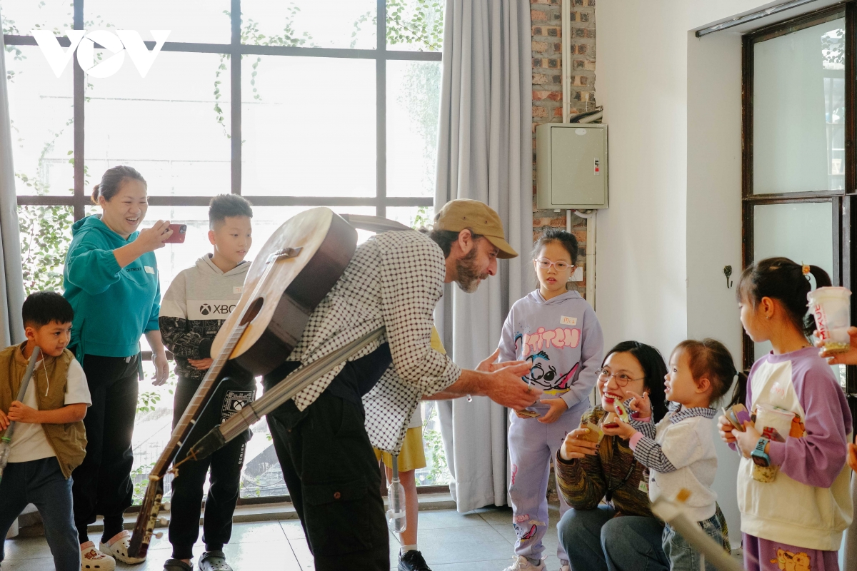 Một góc workshop nơi lon thiếc, chai nhựa, dây buộc… biến thành nhạc cụ vui nhộn dưới sự dẫn dắt của nghệ sĩ Ian Richter.
