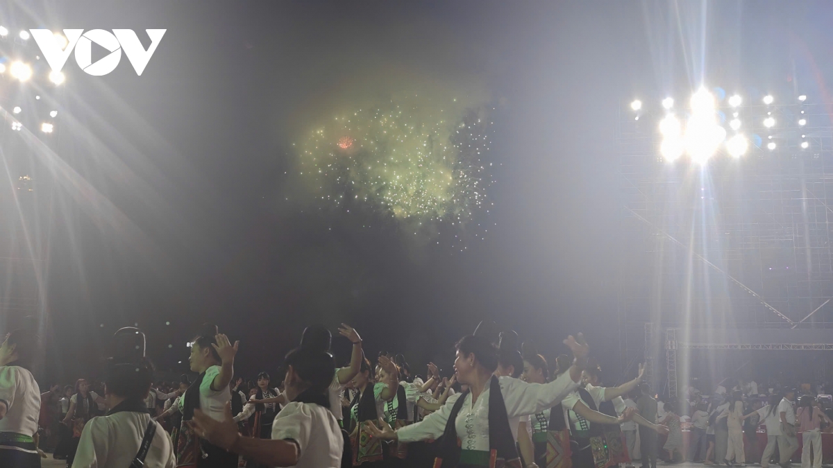 Màn bắn pháo hoa nghệ thuật làm bừng sáng Quảng trường Tây Bắc, chào mừng kỷ niệm 130 năm thành lập tỉnh Sơn La.