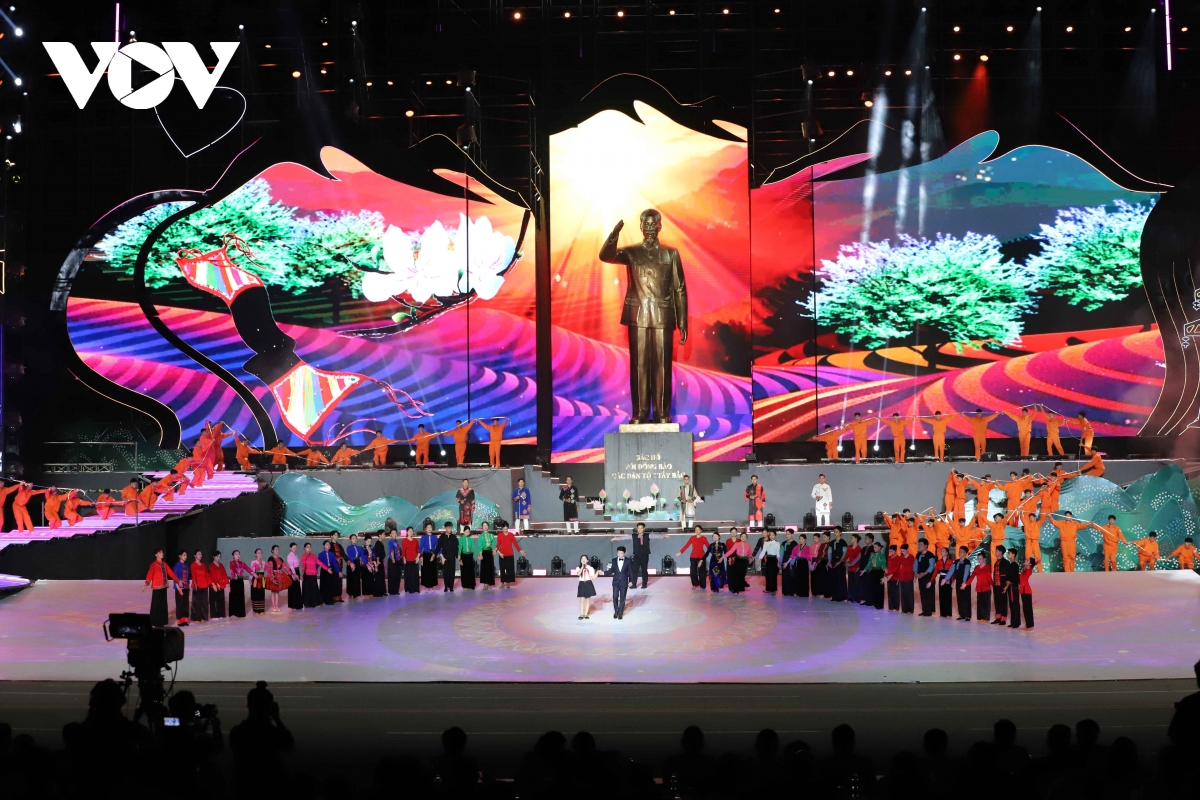 Tại chương trình nghệ thuật, 1.200 nam nữ diễn viên chuyên và không chuyên đã mang đến những màn trình diễn âm thanh, ánh sáng, hát múa đặc sắc.
