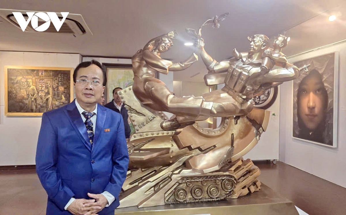 Tại triển lãm, nhiều tác phẩm điêu khắc thu hút sự chú ý của du khách, trong đó nổi bật là “Mùa xuân hòa bình”, tái hiện thời khắc đại thắng mùa xuân 1975, giải phóng miền Nam, thống nhất đất nước. Tác phẩm khắc họa hình ảnh người chiến sĩ trở về trong niềm vui đoàn tụ, nâng niu con nhỏ, nắm tay người vợ sau những năm tháng chiến tranh. Với bố cục hiện thực, ngôn ngữ tạo hình tinh tế, tác phẩm khơi gợi ký ức hào hùng, niềm tự hào và xúc cảm trọn vẹn khi hòa bình trở lại.