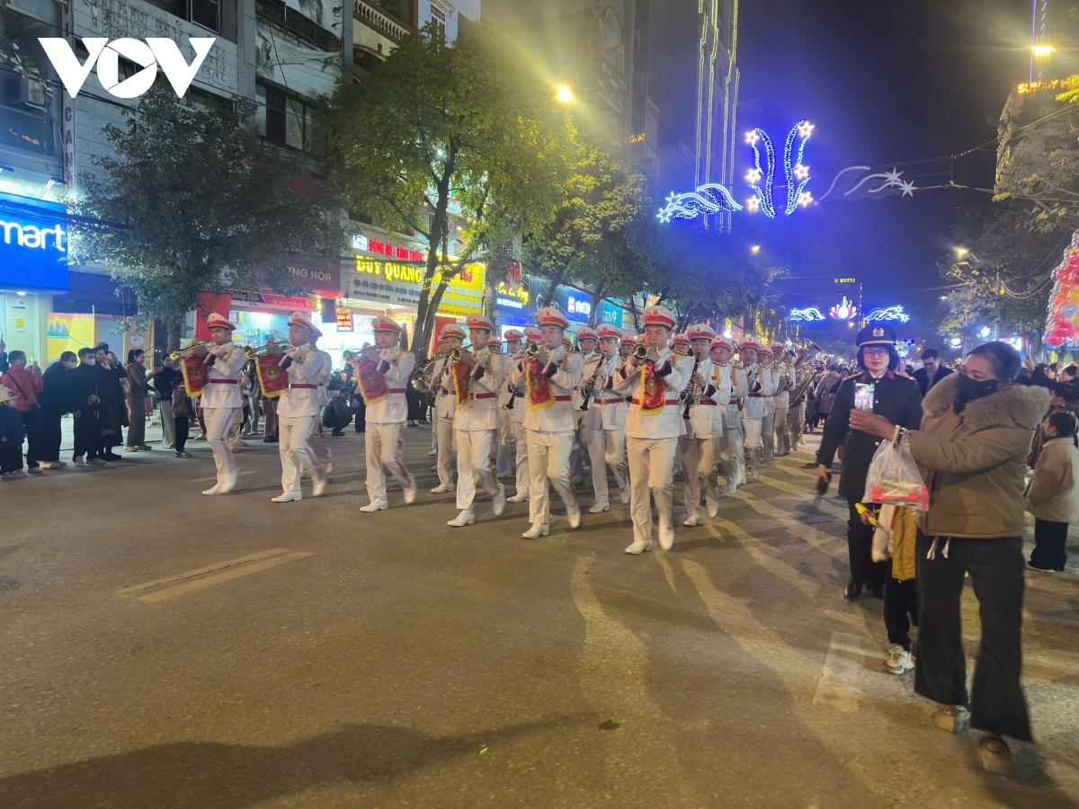 Từ 19h tối, đông đảo người dân và du khách đã có mặt tại phố đi bộ Kim Đồng để thưởng thức tiết mục diễu hành kết hợp âm nhạc. Bằng kỹ năng sử dụng nhạc cụ điêu luyện, kết hợp với trống hội, các nghệ sĩ đã mang đến cho khán giả màn trình diễn đầy cảm xúc và khí thế hào hùng với nhiều bài hát về quê hương, đất nước như: "Việt Nam quê hương tôi", "Hào khí Việt Nam", "Bác đang cùng chúng cháu hành quân"… Đây cũng là hoạt động văn hóa, nghệ thuật đặc sắc, góp phần xây dựng hình ảnh người chiến sĩ công an nhân dân gần gũi, chan hòa, thân thiện.
