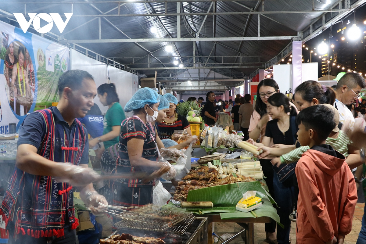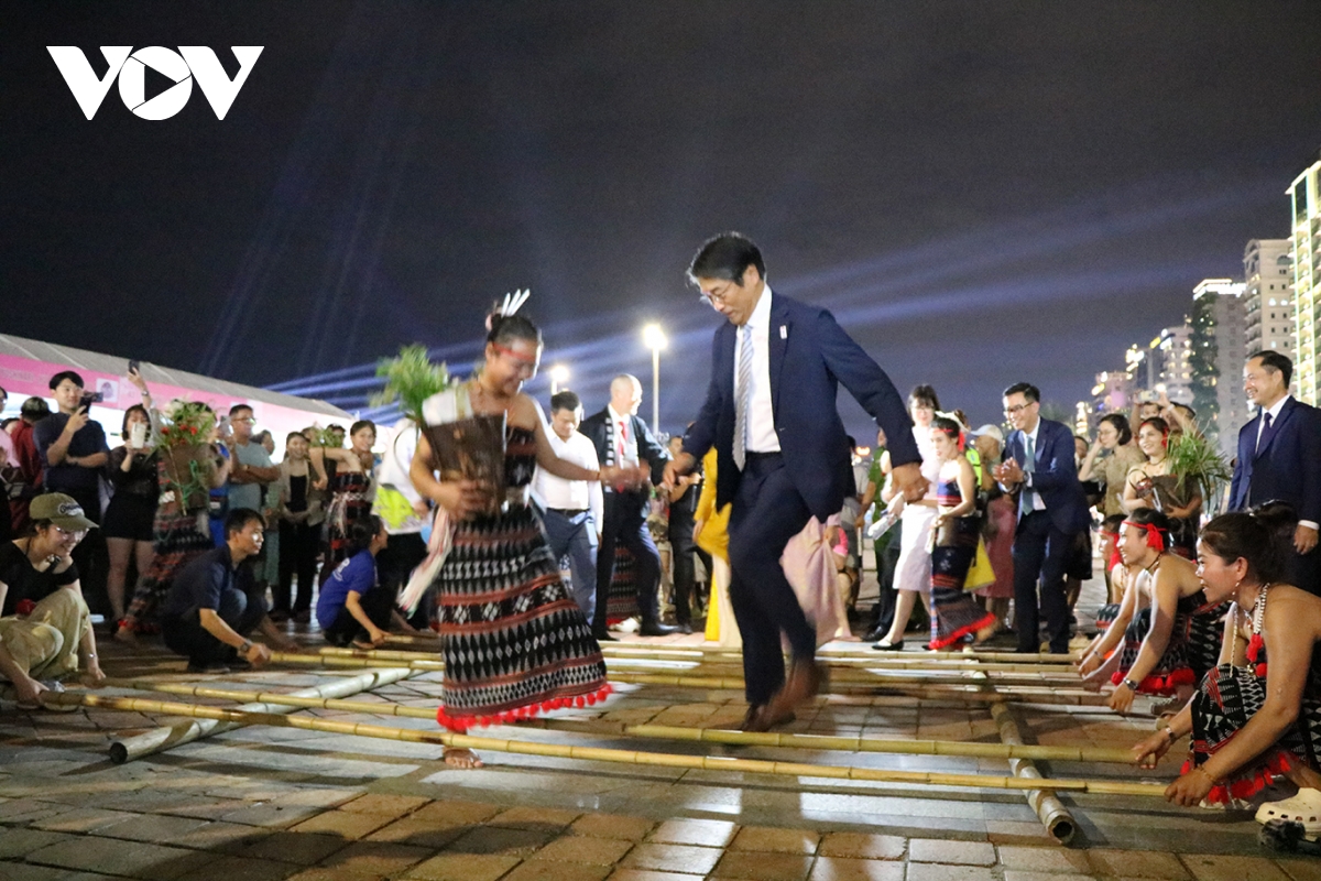 Đến với Lễ hội, người dân thành phố Đà Nẵng và du khách còn được thưởng thức không gian văn hóa ẩm thực đặc sắc với nhiều món ngon đặc trưng của Việt Nam, Nhật Bản. Chị P'loong Ven, người Cơ Tu ở xã Bến Giằng, thành phố Đà Nẵng rất hào hứng khi cùng các bạn lần đầu tiên tham gia lễ hội Việt Nam-Nhật Bản, giới thiệu những nét văn hóa đặc sắc và ẩm thực đồng bào vùng cao. “Đến với lễ hội lớn như thế này, đây là lần đầu tiên em tham gia. Em rất là vui, vinh dự được tham gia lần này và hôm nay người dân tộc Cơ Tu đến đây cùng giao lưu với các bạn Nhật Bản. Chúng em mang đến tiết mục văn nghệ là múa sạp. Rất mong quý vị theo dõi và sẽ yêu thích và sau này sẽ lên ghé thăm xã Bến Giằng, thành phố Đà Nẵng”.