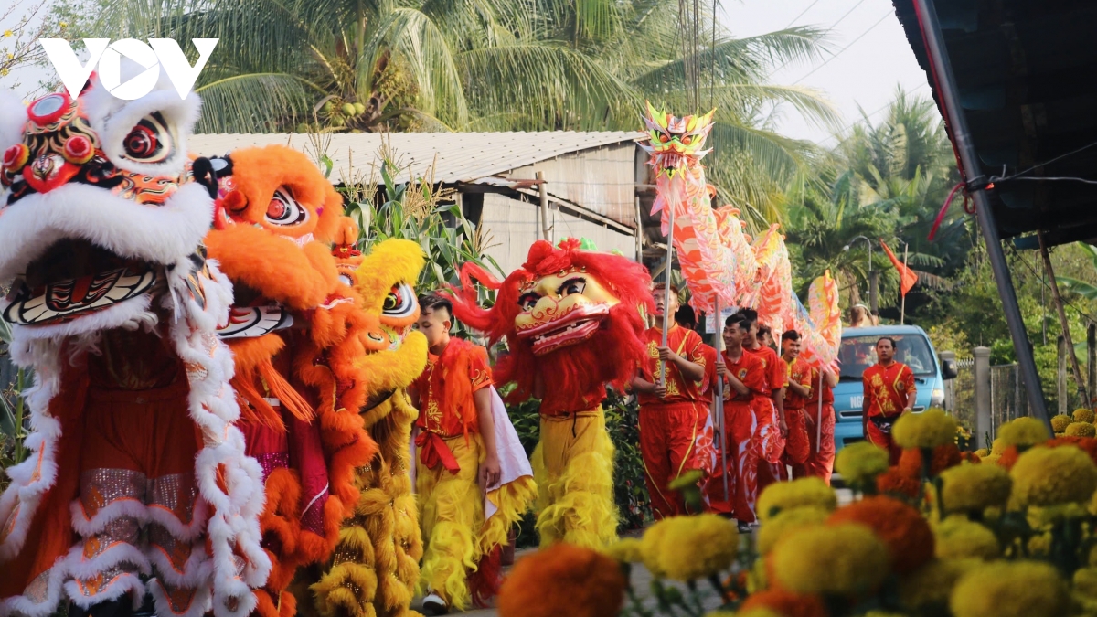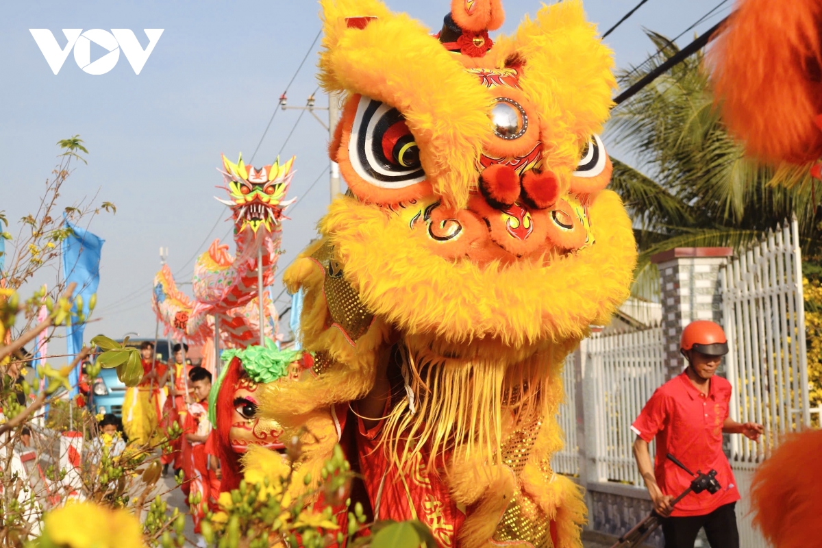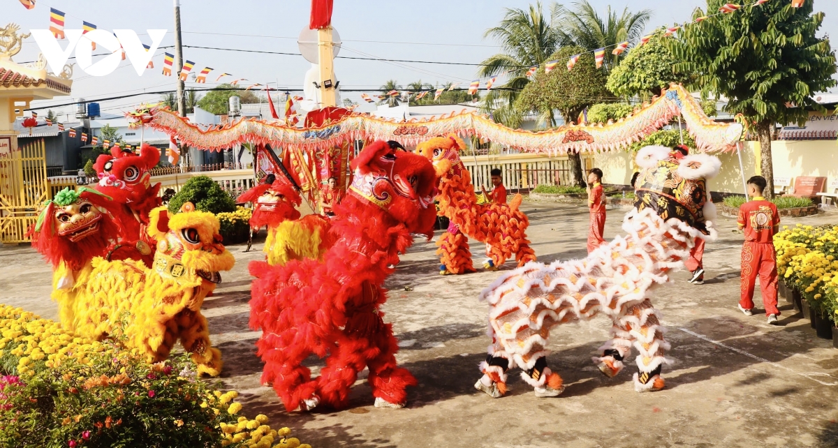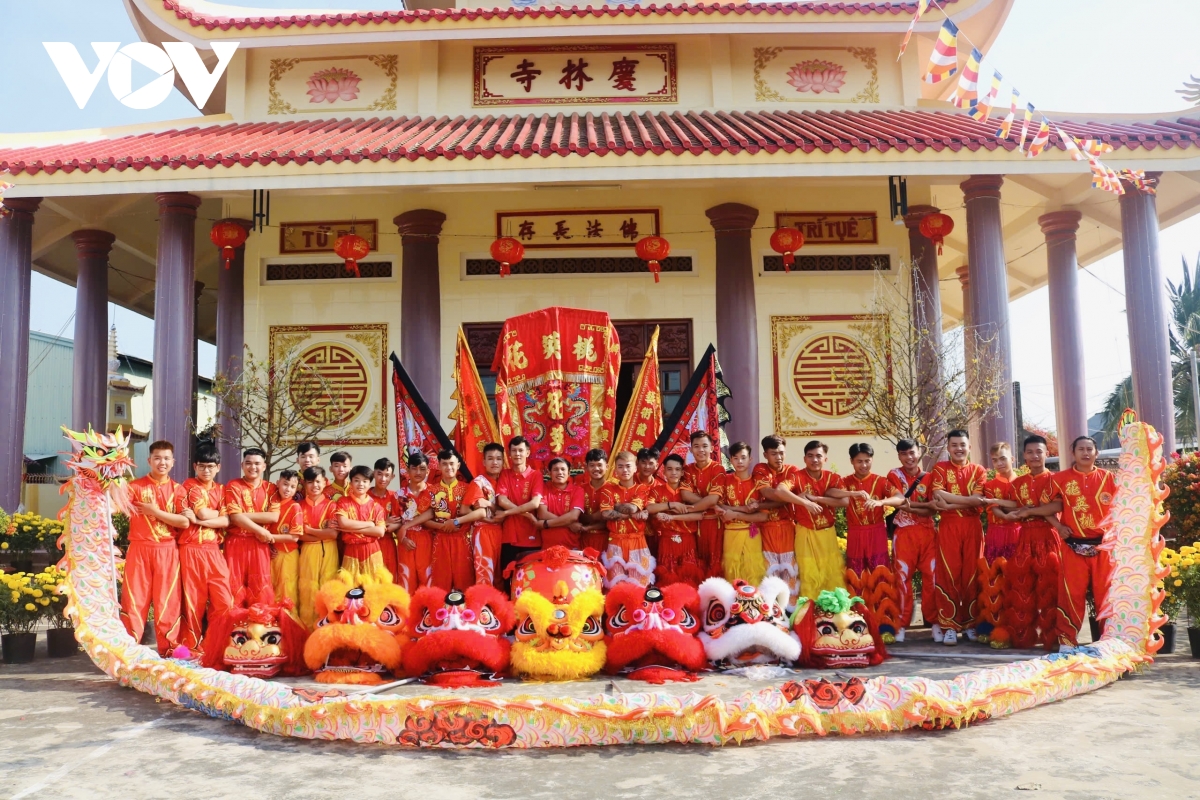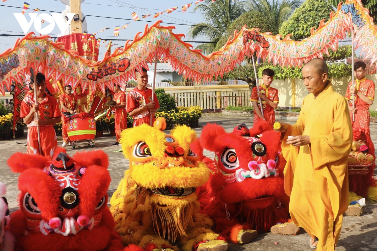 Sau nghi thức làm lễ, đoàn lân sẽ diễu hành và múa một bài xung quanh chùa.