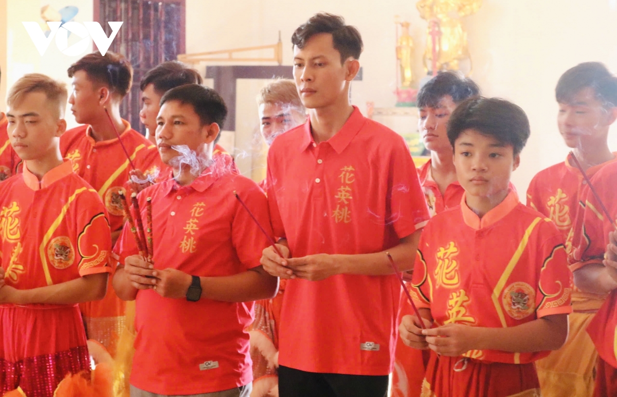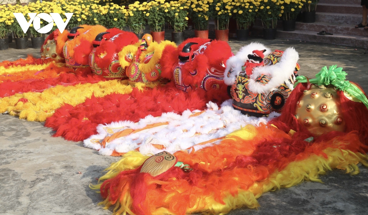 Chú lân - rồng xếp ngay ngắn và thành viên đoàn lân vào trong chùa thắp hương, cầu một năm may mắn và mong lân - rồng sẽ có nhiều bài múa mang lại đời sống tinh thần phong phú cho nhân dân.