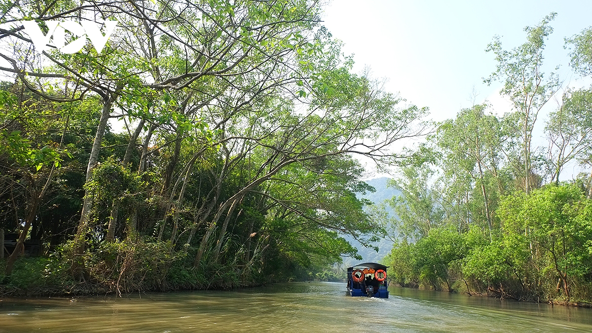 Du khách đi thuyền từ suối Yến theo tuyến chùa Thiên Trù, động Hương Tích