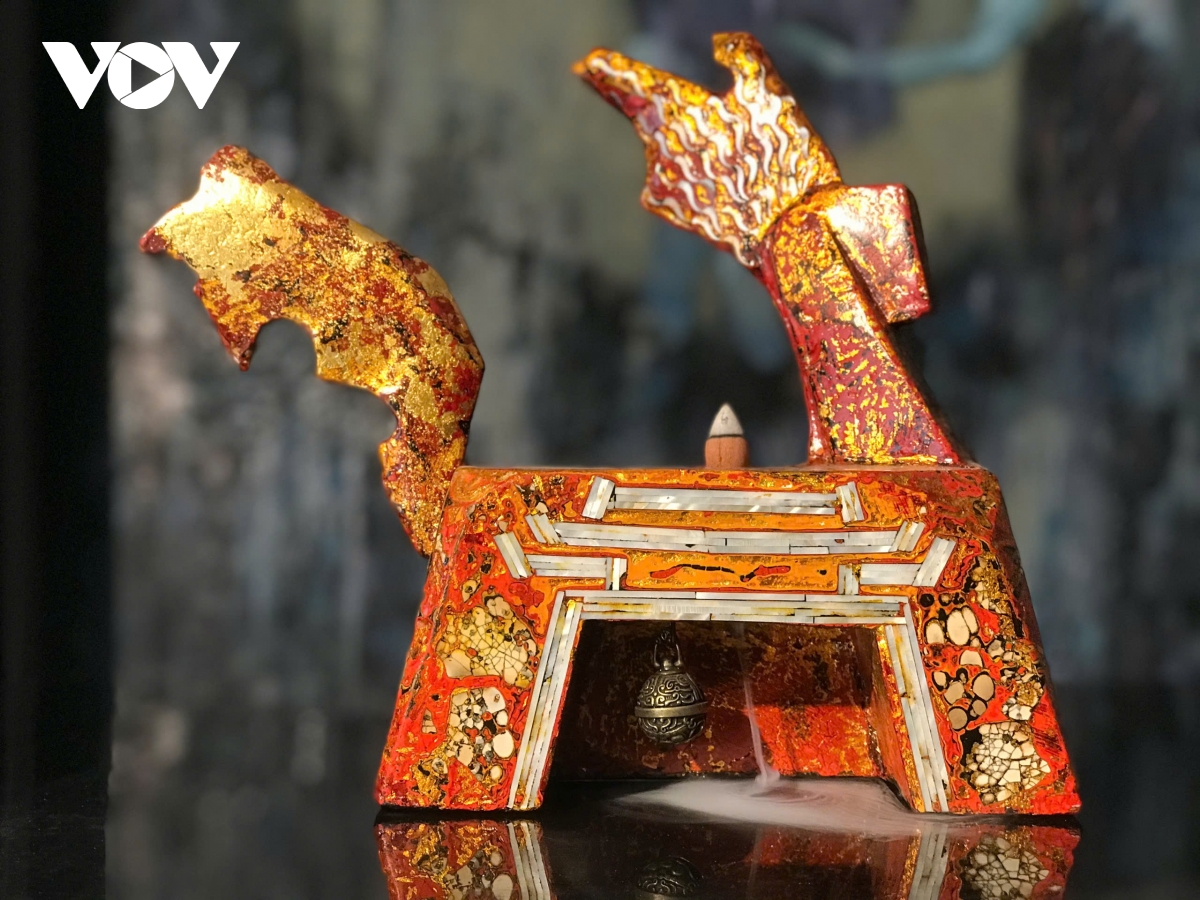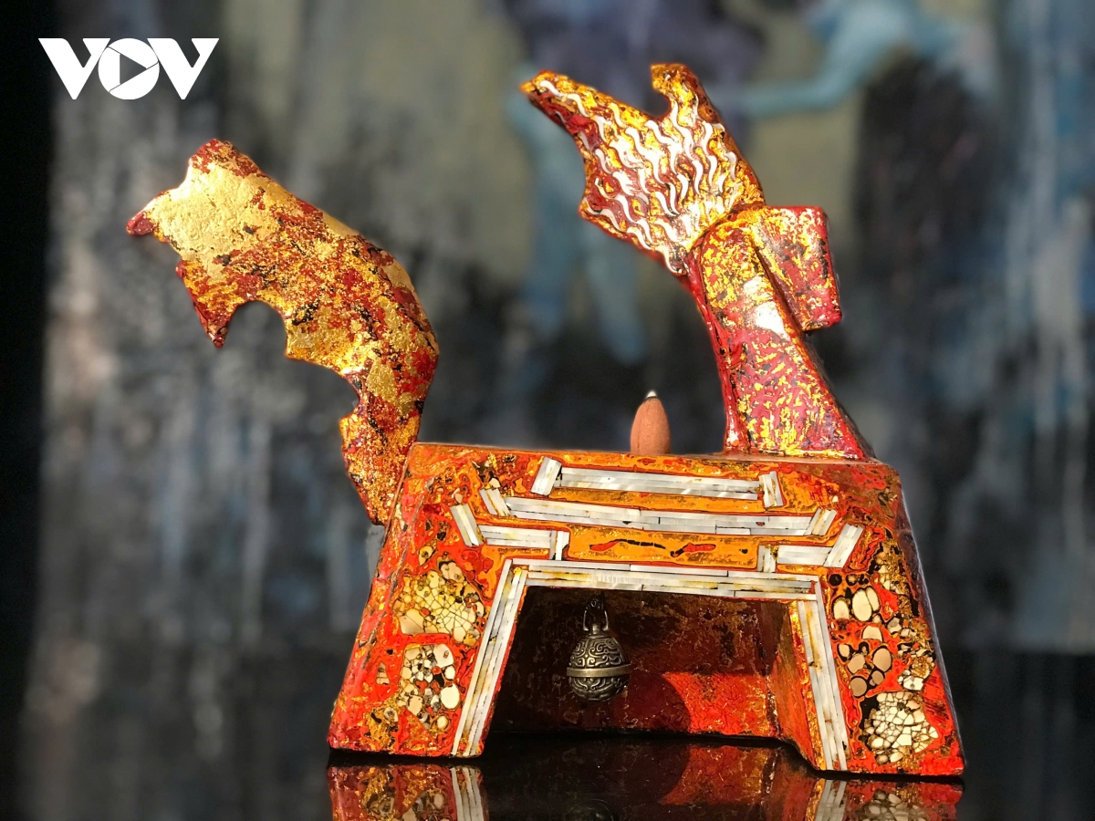 Lấy cảm hứng từ hình tượng Thánh Gióng – biểu tượng bất diệt của tinh thần quật cường, khát vọng vươn lên và sức mạnh cộng đồng, bộ sưu tập “Gióng” tái hiện hình ảnh ngựa, long mã và các tích văn hóa Việt dưới ngôn ngữ sơn mài đương đại