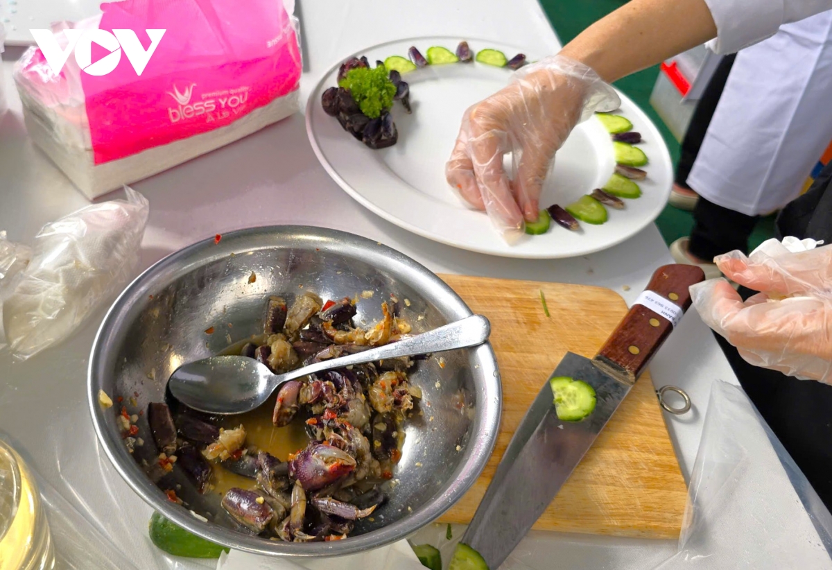 VOV.VN - Tại cuộc thi đầu bếp tài năng của tỉnh Cà Mau, các đầu bếp đa số chọn nguyên liệu của món ăn chính đến từ các sản vật nổi tiếng của Cà Mau: tôm, cua, ba khía,… để chế biến ra những món ăn bắt mắt.