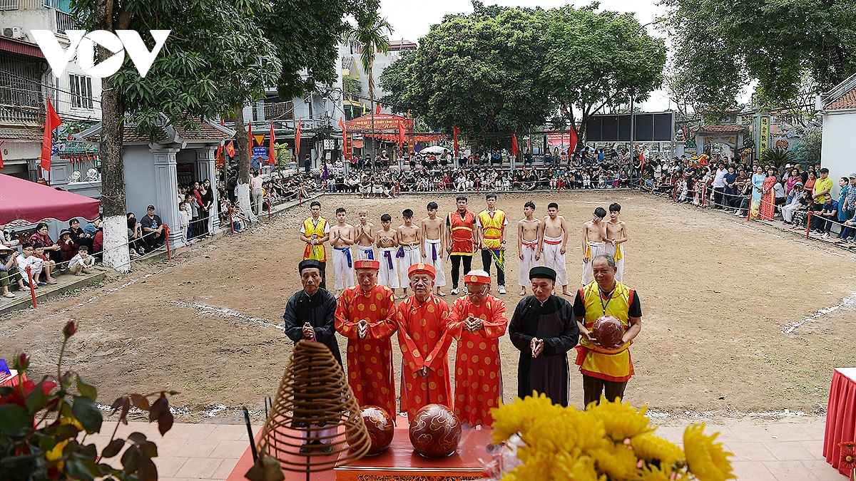 VOV.VN - Hội vật cầu làng Thúy Lĩnh có từ thời Lý, gắn với huyền tích Linh Lang Đại Vương tổ chức hội vật cầu để quân sĩ vui chơi dịp Tết đến, Xuân về và rèn luyện sức khỏe. Trải qua thăng trầm lịch sử, lễ hội vẫn được gìn giữ, bảo tồn và là niềm tự hào của người dân Thúy Lĩnh.