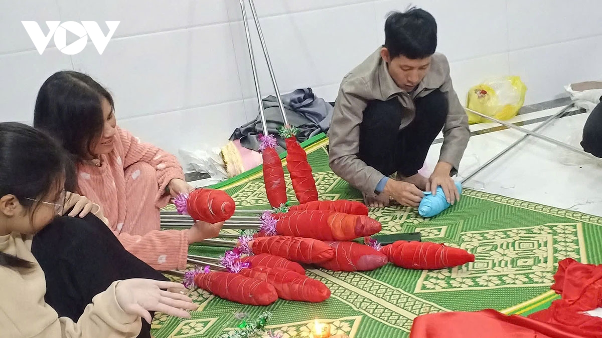 Vài tuần trước giao thừa, nhiều gia đình làm nghề thợ may cắt vải làm thành những bó đuốc thật đẹp để bán cho người dân.