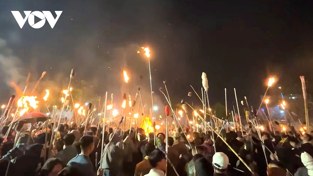 Đúng vào thời khắc chuyển giao giữa năm cũ và năm mới, người dân đến bên đống lửa giữa sân đình để châm lửa rồi rước ngọn lửa thiêng đó về nhà mình.