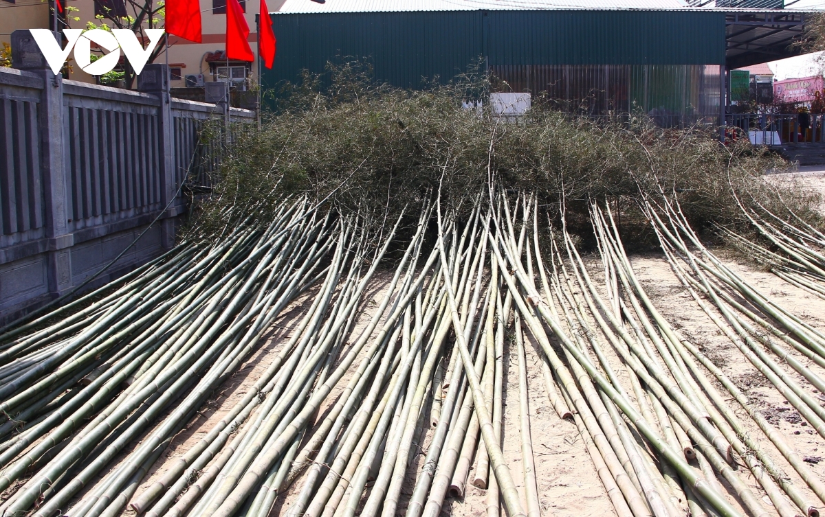 Những cây tre được lựa chọn kỹ lưỡng, thân thẳng, đốt đều, tán lá còn nguyên đến tận ngọn. Những cây tre dựng nêu như vậy sẽ là biểu tượng cho sự đủ đầy, may mắn trong năm mới. Người dân địa phương và các vùng lân cận đổ về chợ nêu từ rất sớm để chọn cho gia đình một cây tre ưng ý dựng trước sân nhà ngày Tết.