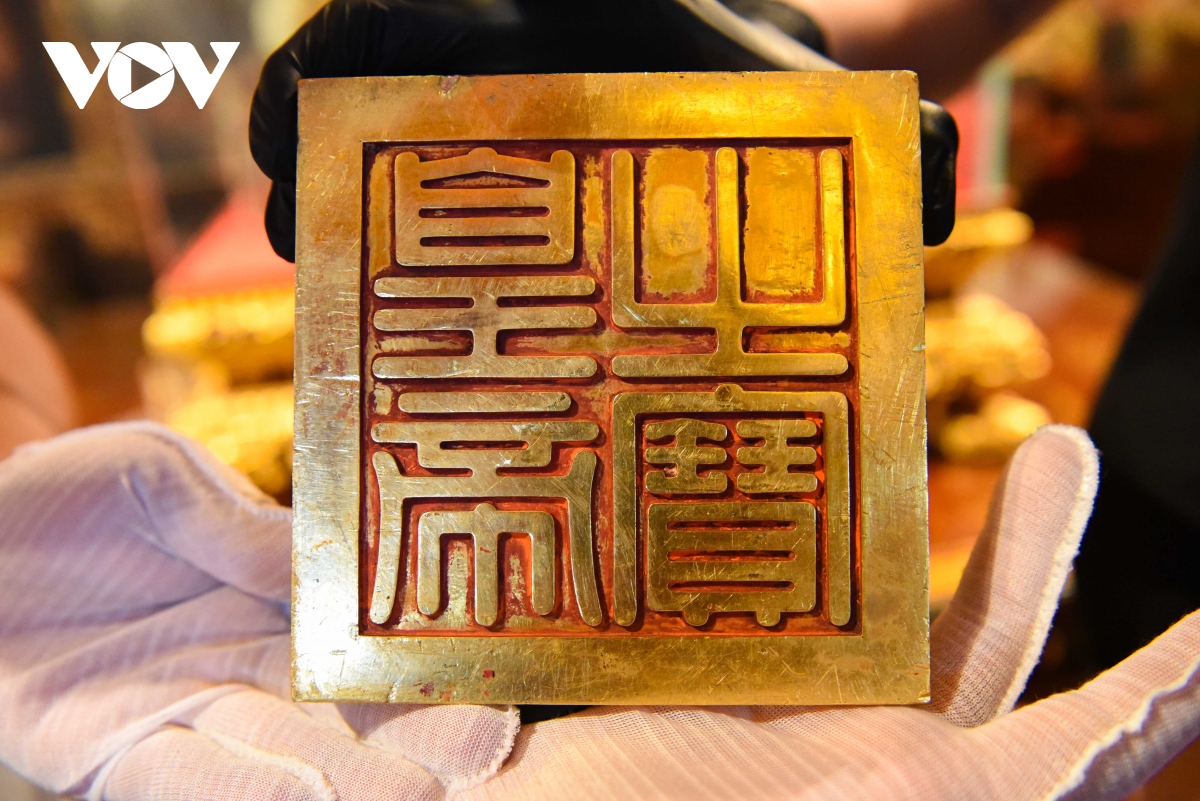 Hiện vật được đặt tên Con dấu vàng quý hiếm Kim bảo tỷ của Hoàng đế Minh Mạng (1791-1841), cao 10,4 cm, nặng 10,78 kg, mặt hình vuông, kích thước 13,8x13,7 cm.