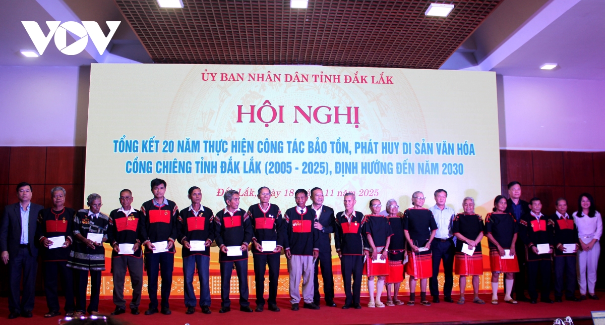 VOV.VN - Hôm nay (18/11), UBND tỉnh Đắk Lắk tổ chức Hội nghị Tổng kết 20 năm công tác bảo tồn và phát huy di sản văn hóa cồng chiêng (2005-2025), định hướng đến năm 2030. Hội nghị thu hút đông đảo chuyên gia, nhà nghiên cứu văn hóa và nghệ nhân ở các buôn làng trong tỉnh Đắk Lắk tham dự.