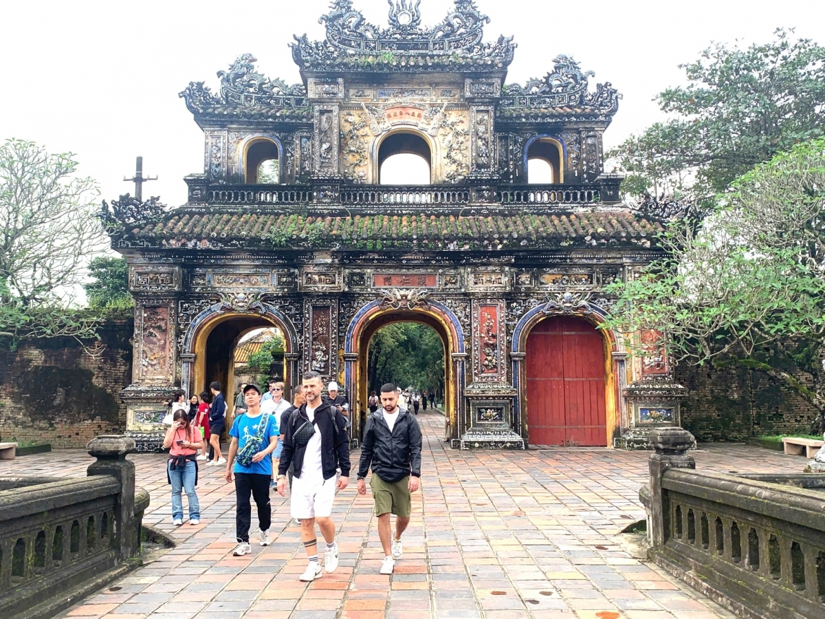 Du khách tham quan Điện Kiến Trung, Đại Nội Huế