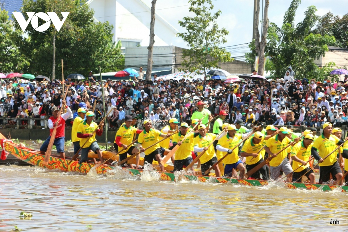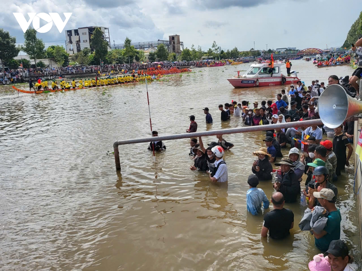 Khi các đội đua bước vào thi đấu, tiếng trống cùng tiếng reo hò cổ vũ của hàng ngàn khán giả khiến bầu không khí thêm sôi động, náo nhiệt
