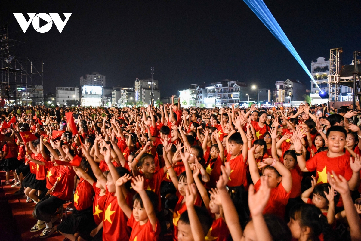 VOV.VN - Hàng nghìn người tại 2 điểm cầu đã đến dự xem ca sĩ Hòa Minzy và Tuấn Cry biểu diễn bài hát Bắc Bling với phụ họa của hơn 1.500 nghệ sĩ, diễn viên quần chúng chào mừng thành lập tỉnh Bắc Ninh mới.