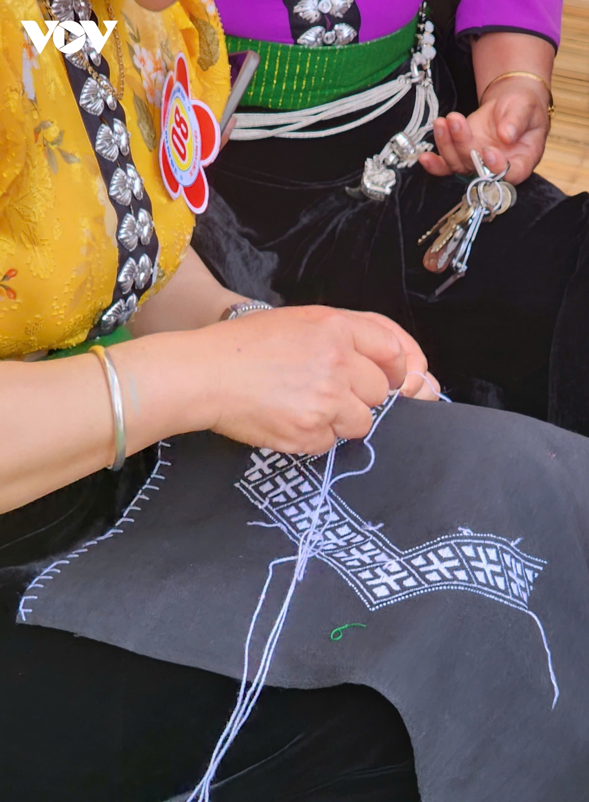 Bà Hoan chia sẻ: "Phụ nữ Thái ngày xưa không biết thêu thì không lấy chồng được đâu. Phải biết thêu khăn Piêu để còn tặng bên nhà chồng. Từ lớp 3, lớp 4 là đã bắt đầu học thêu rồi. Không chỉ Piêu mà cả gối, chăn, đệm... đều phải biết làm".