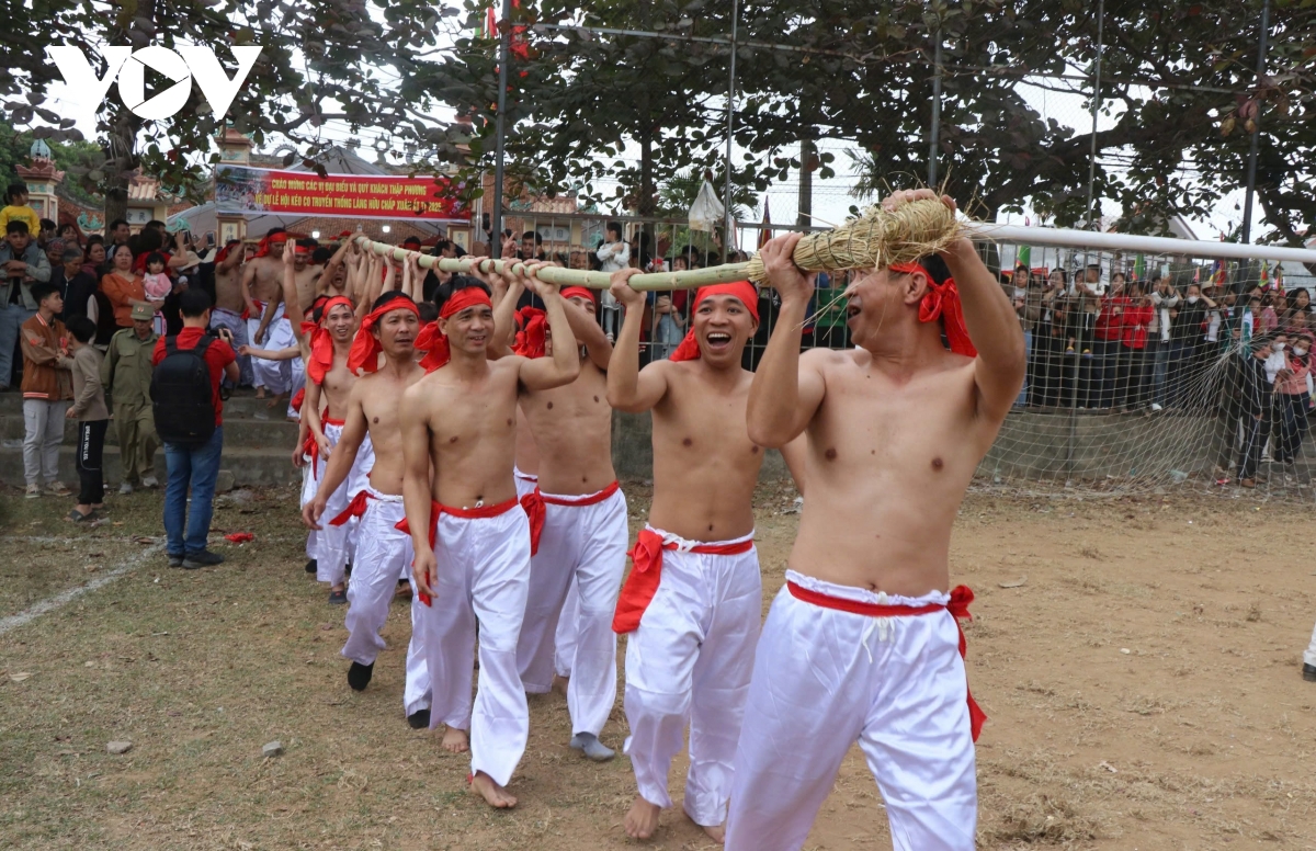 Trai đinh trong làng thực hiện rước “dây kéo” từ đình làng ra sân
