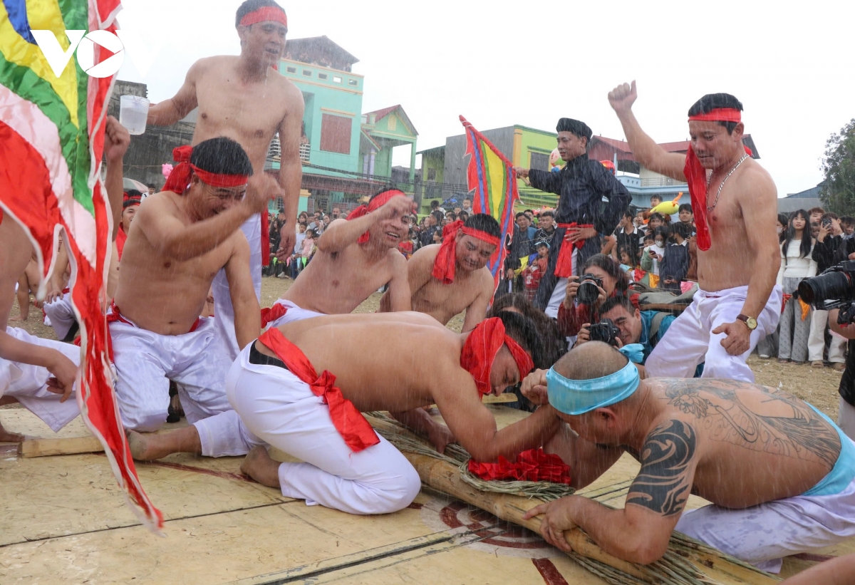 "Việc lựa chọn tre làm dây kéo được người dân tiến hành hết sức cẩn trọng và tỉ mỉ. 2 cây tre được chọn phải đạt các tiêu chuẩn: thẳng, không quá già cũng không quá non, ngọn nở, lá bông, thân cây không bị kiến đục, sâu"- đại diện BTC thông tin.