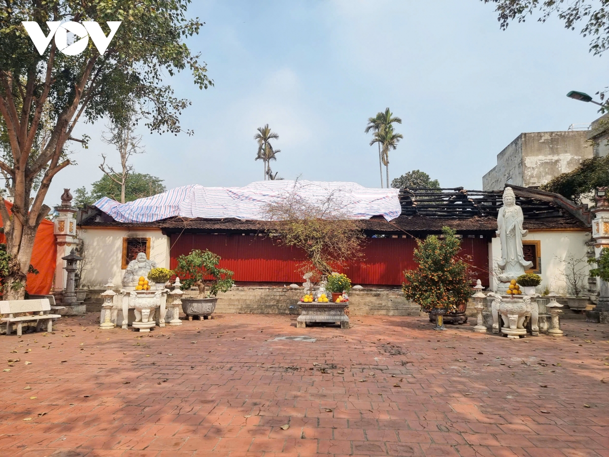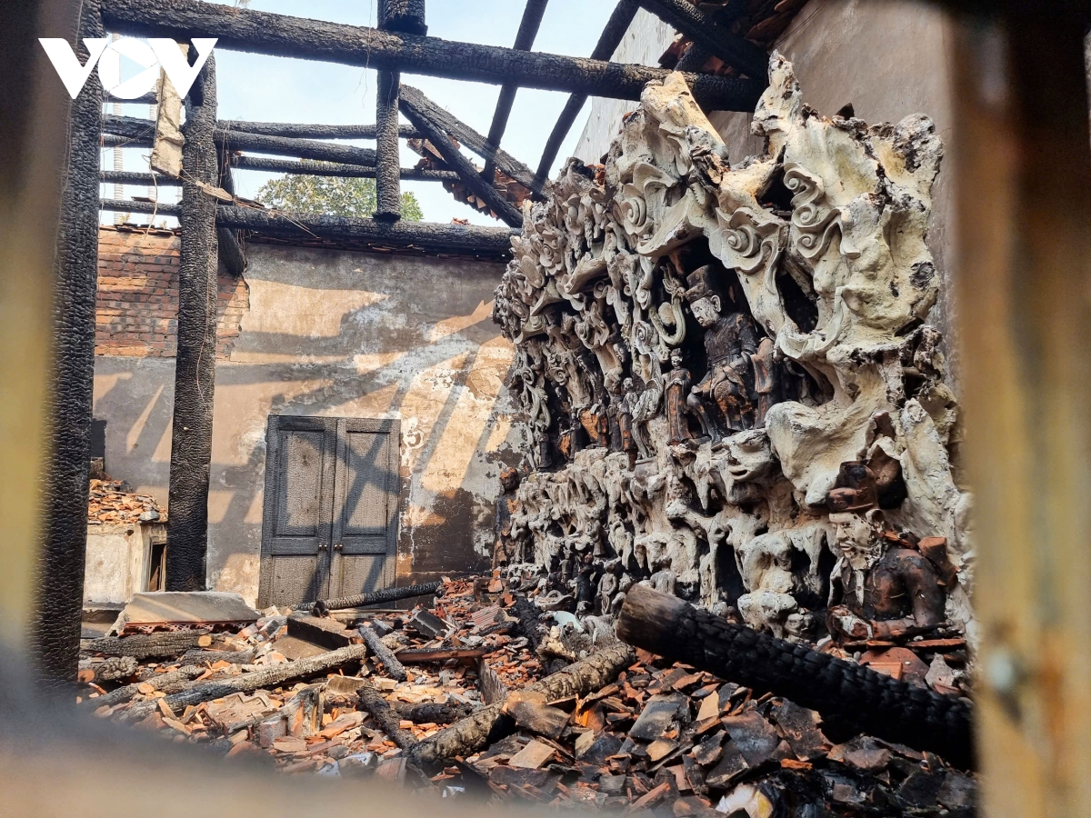 Hầu hết pho tượng của gian tam bảo có niên đại từ thế kỷ 17 thời Lê Trung Hưng đã bị thiêu rụi.